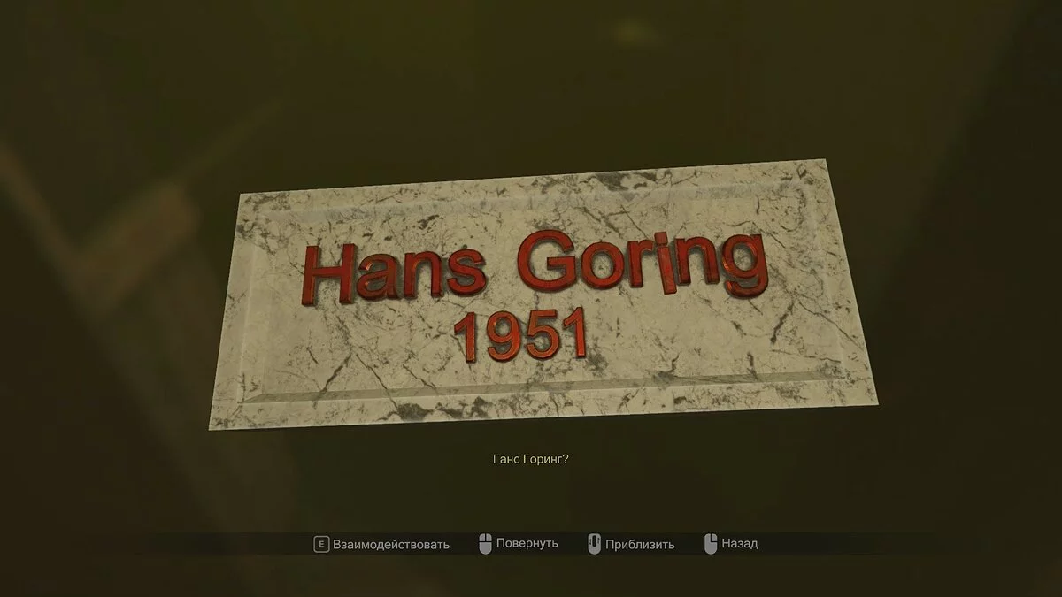 Переместитесь в 1951 год, откройте ключом помещение и осмотрите табличку Ганса Горинга. Возьмите букву «i», вернитесь в 1987 год и установите её на табличку Мэдисон Хэйл. Сфотографируйте гроб, чтобы подобрать череп.