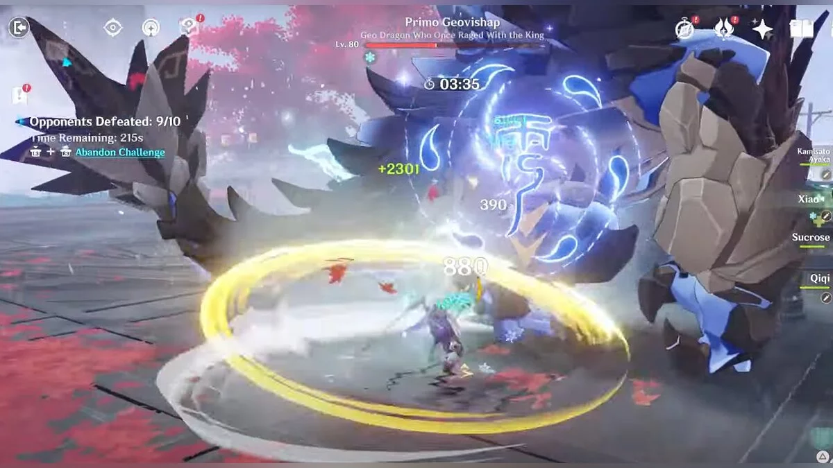 Здесь вам доступна особая способность под названием «Рассекающий поток листьев», которая наносит огромный урон врагам. После первого использования этого умения нужно выждать определённое время, прежде чем применять его снова. Однако при помощи элементальных навыков и взрывов стихий вы сможете сократить время перезарядки. Этой тактикой стоит воспользоваться во время прохождения испытаний.