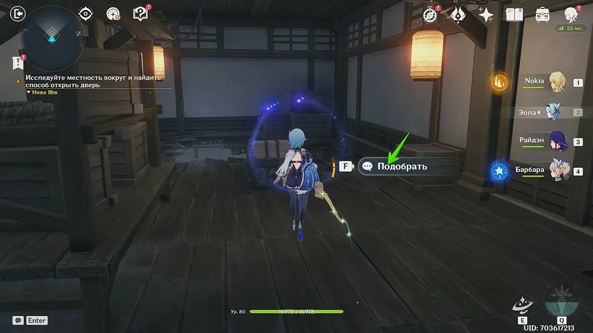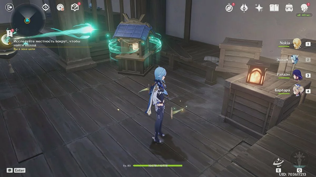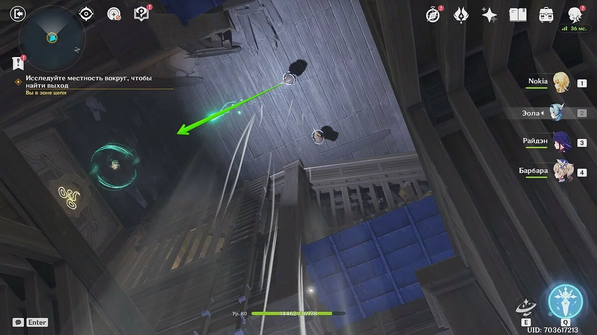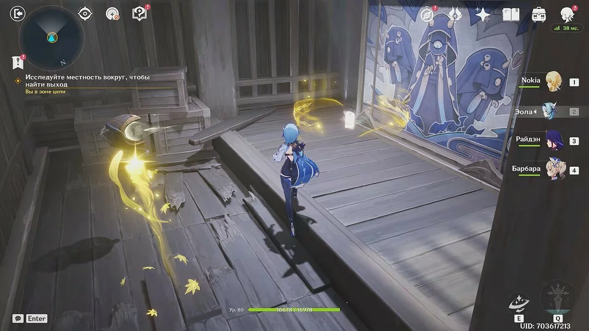 Сразу после этого вы встретите Кадзуху, Синь Янь, Фишль и Мону. Когда диалог завершится, вы окажетесь в неисследованной области. Чтобы выбраться отсюда, придётся решить несколько несложных головоломок.