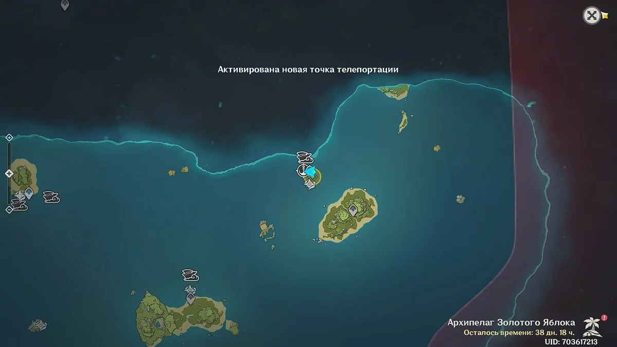 Отдохните до 06:00 утра следующего дня, чтобы встретиться с друзьями и запустить кат-сцену. Используйте волноход и доберитесь до ближайшего острова. Активируйте здесь точку телепортации. Так вы разблокируете небольшую часть архипелага Золотого яблока.