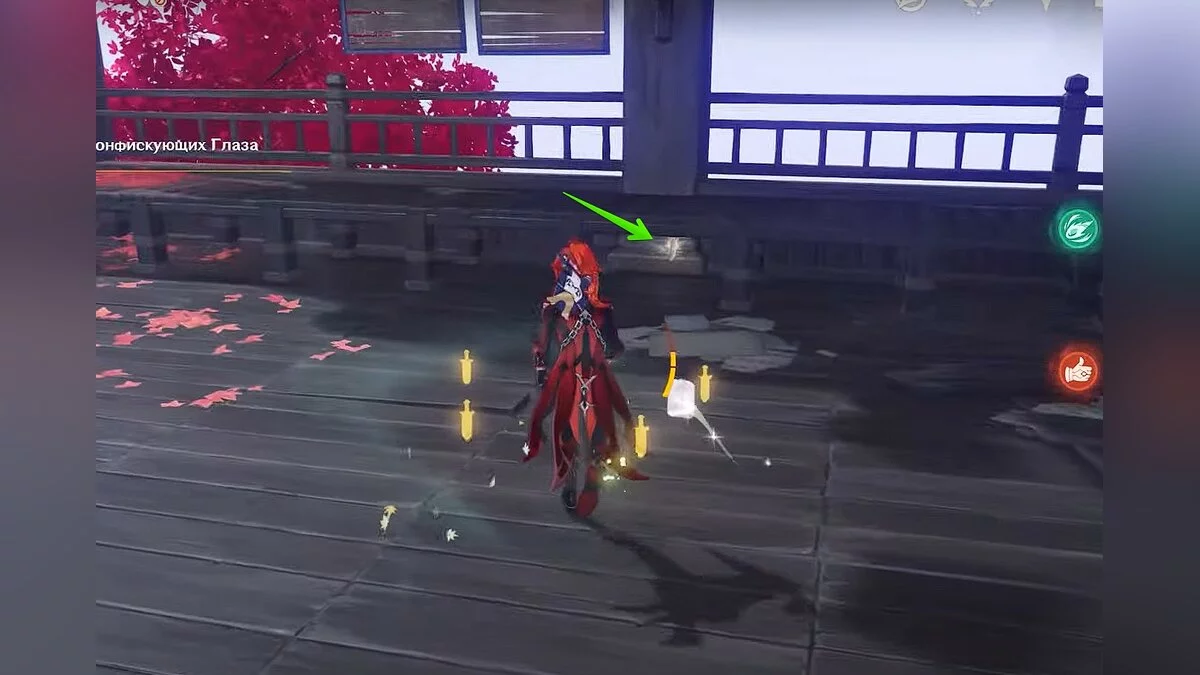 Слева от Призменной башни находится устройство для переключения комнат. Не активируйте его и войдите во двор. Здесь вы найдёте первый омамори.