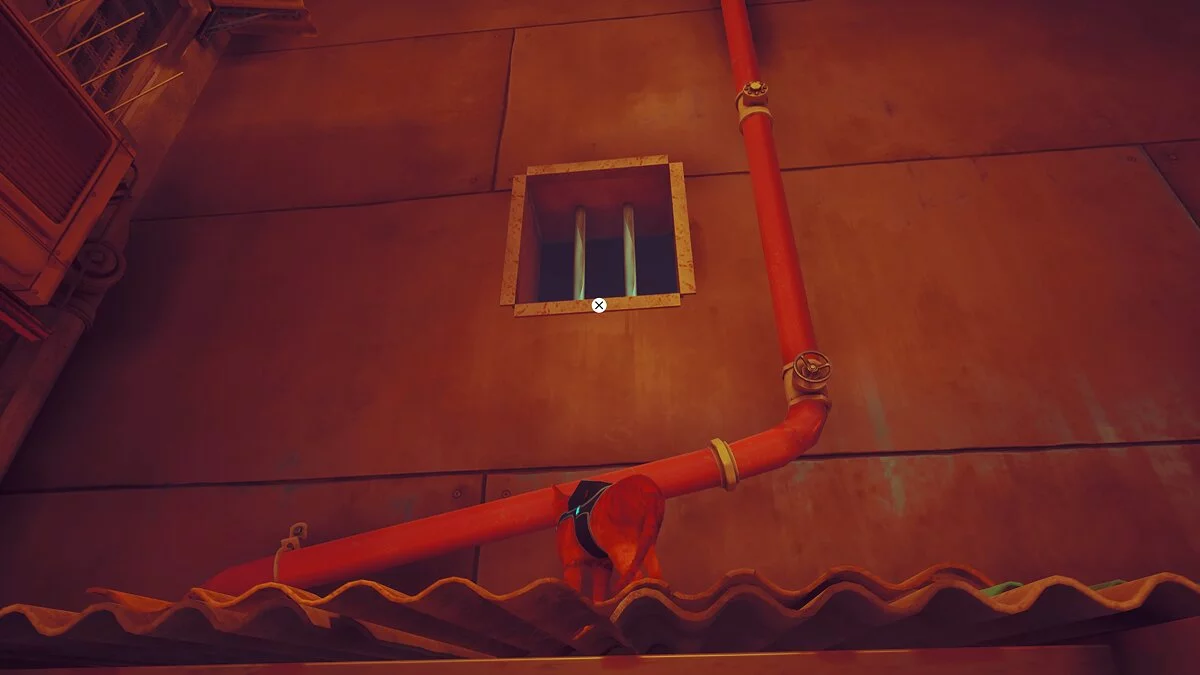 - Жёлтое — возвращаемся к Збалтазару, проходим по уровню вперёд и за зданием кафе залезаем на трубу.