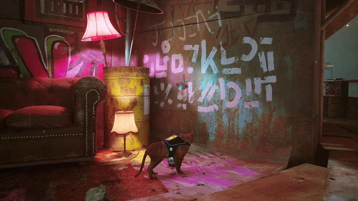 В Stray отсутствует карта, поэтому вам придётся ориентироваться по окружению и запоминающимся строениям. Несмотря на наличие нескольких разнообразных локаций, даже крупные города можно пробежать за несколько минут, поэтому сбор коллекционных предметов не займёт много времени.