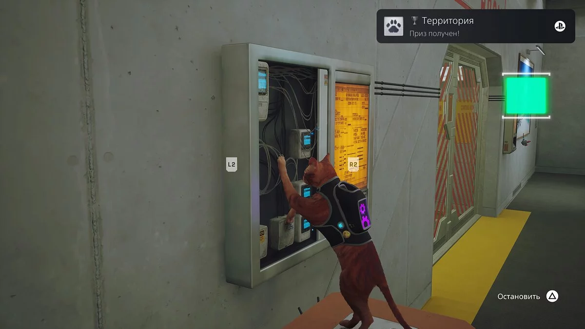 При попытке открыть дверь диспетчерскую котику придётся порвать провода. После выполнения этого действия игрок получит достижение «Территория».