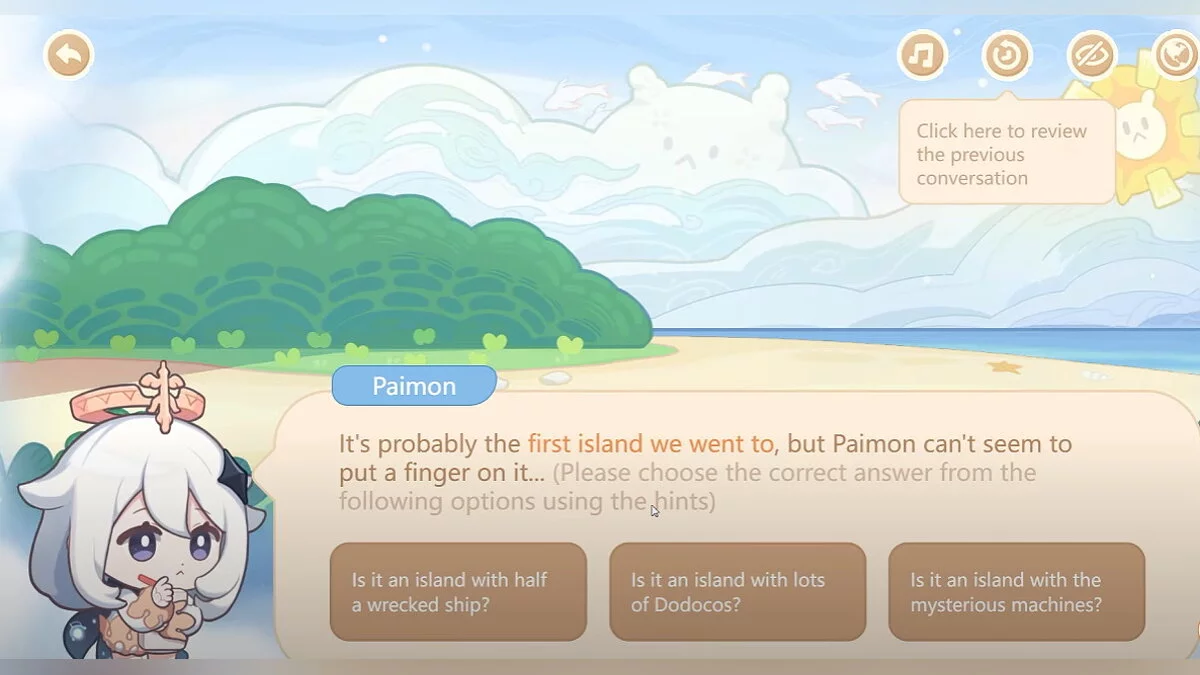 - Вопрос: Кажется это первый остров, на который мы попали, когда отправились на архипелаг, но Паймон не может точно вспомнить…