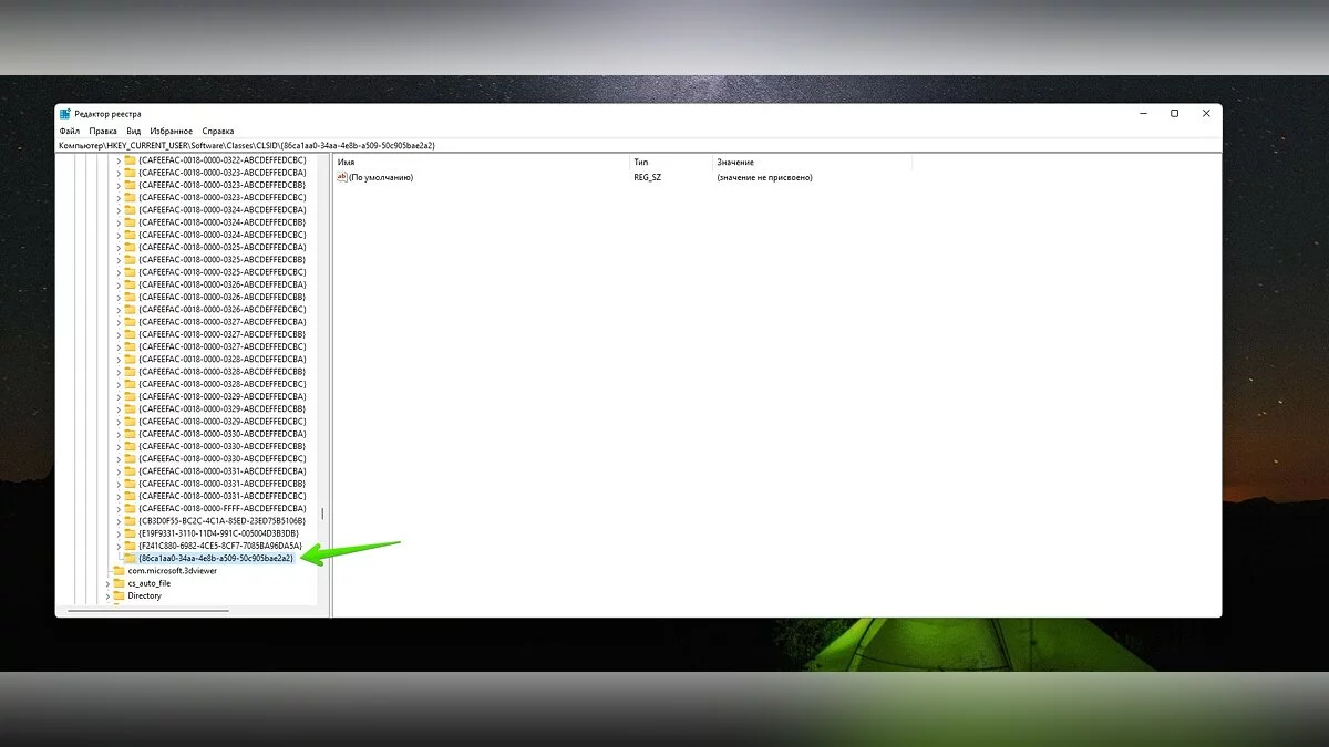 - Создайте новый раздел с именем {86ca1aa0-34aa-4e8b-a509-50c905bae2a2} под папкой CLSID.