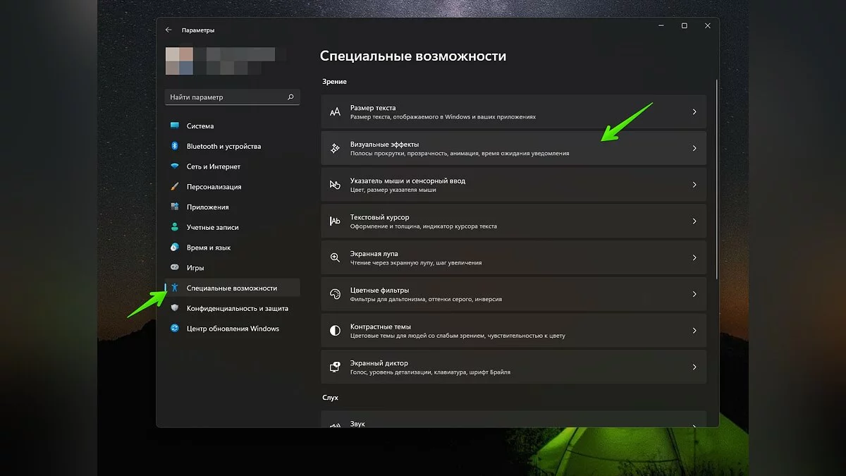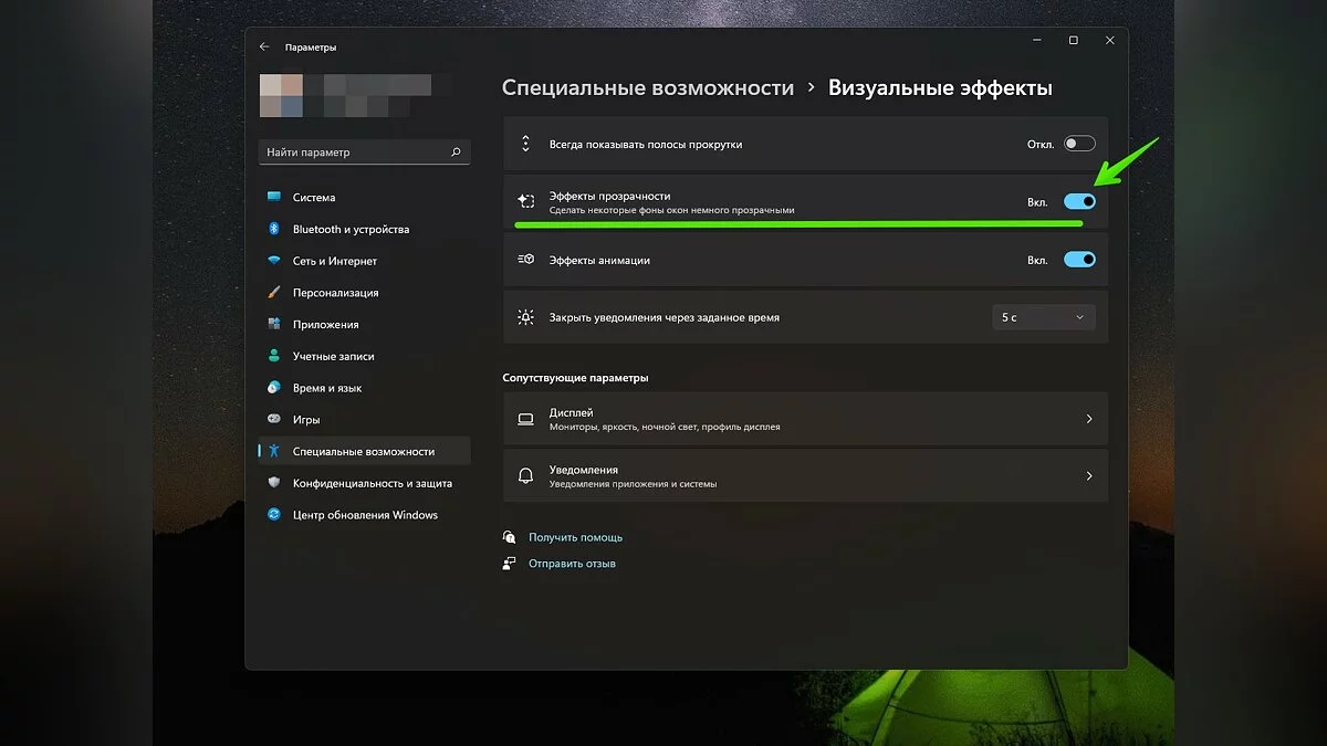 Зайдите в «Настройки» — «Специальные возможности» — «Визуальные эффекты» и также снимите ползунок с параметра «Эффекты прозрачности».