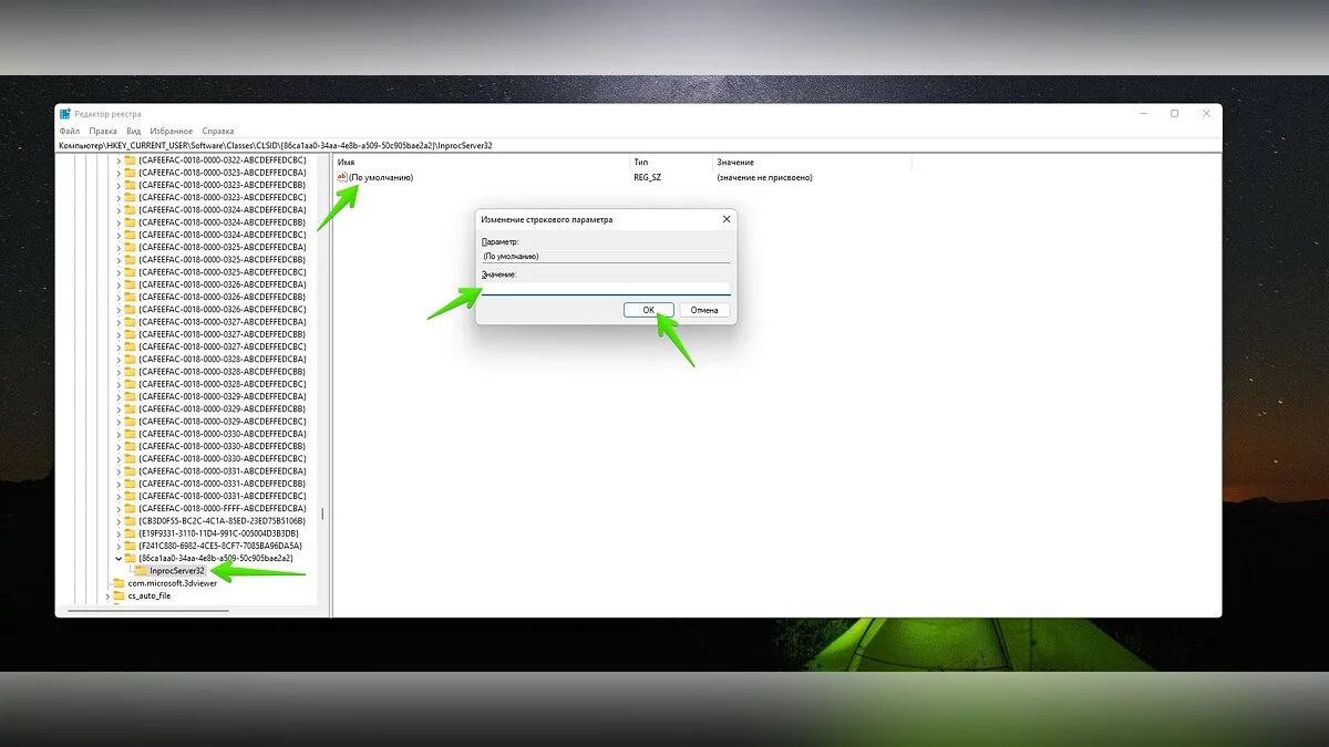 - Создайте раздел с названием InprocServer32 под {86ca1aa0-34aa-4e8b-a509-50c905bae2a2}.