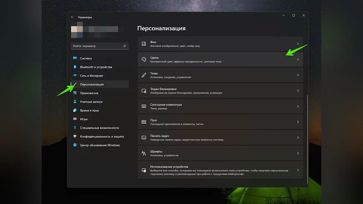 Откройте «Настройки», затем выберите «Персонализация» — «Цвета».