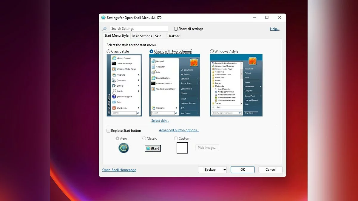 Затем перейдите в «Настройки Open-Shell». Здесь можно изменить внешний вид меню «Пуск» по своему усмотрению.