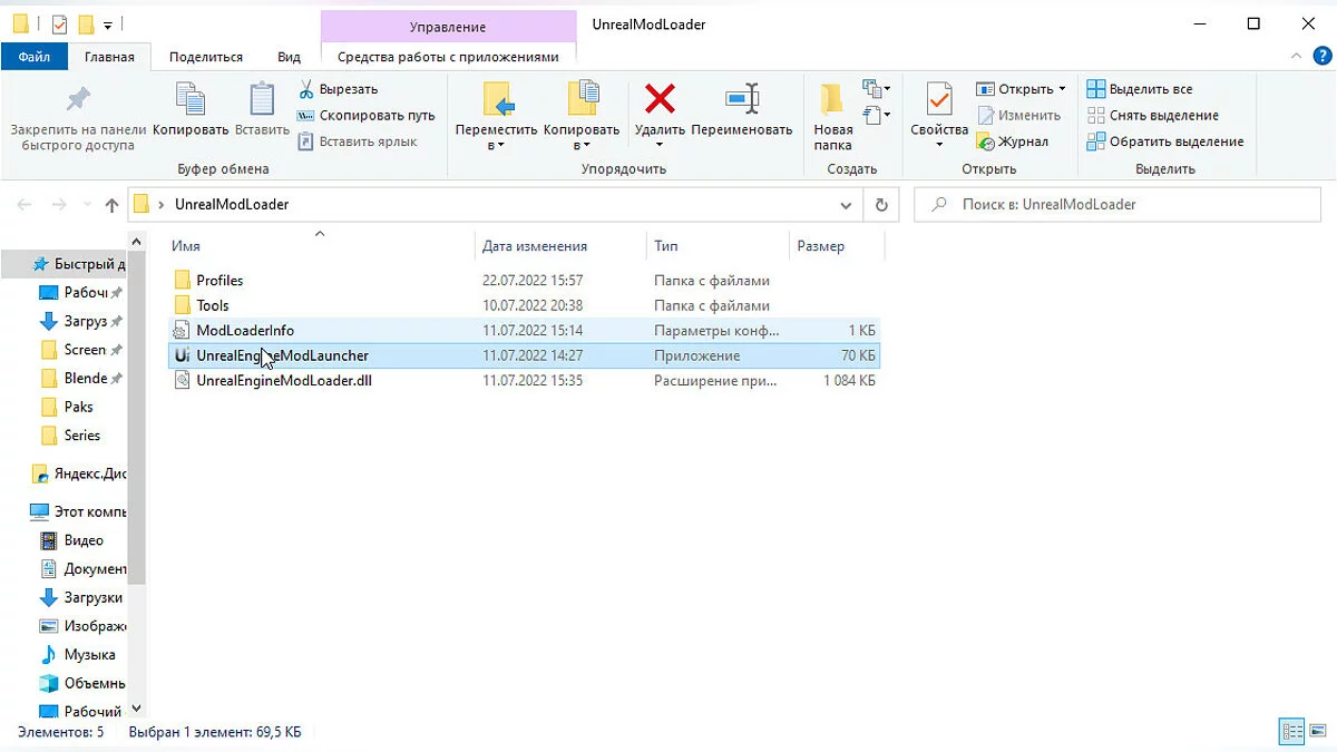 Перейдите по ссылке для автоматической загрузки UnrealModLoader и распакуйте файлы в любое удобное место.