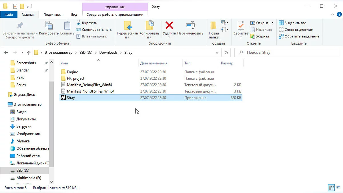 После загрузки необходимо распаковать архивы и поместить загруженные файлы в корневую папку с игрой. Пользователи Steam могут открыть программу и найти Stray в списке купленных приложений. После этого необходимо щёлкнуть ПКМ, открыть «Свойства» и в разделе «Локальные файлы» нажать на кнопку «Обзор» для перехода в правильную папку.