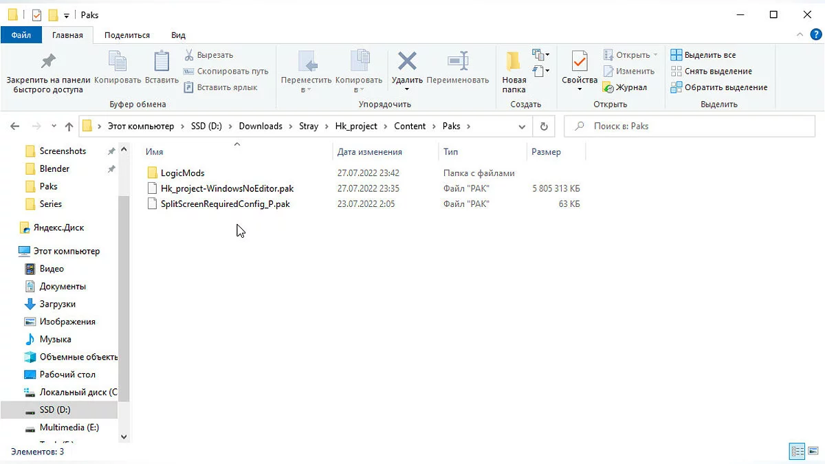 В каталоге с игровыми файлами Stray в первую очередь перейдите по пути «Stray / Hk_project / Content / Paks» и поместите сюда файл SplitScreenRequiredConfig_P.pak.