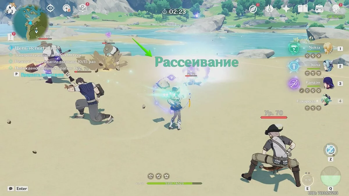 Чем быстрее первый пункт будет выполнен, тем раньше на поле боя появятся сильные враги. Комбинируйте различные стихии, затем атакуйте обычными ударами Сахарозы, чтобы вызвать реакцию «Рассеивание».