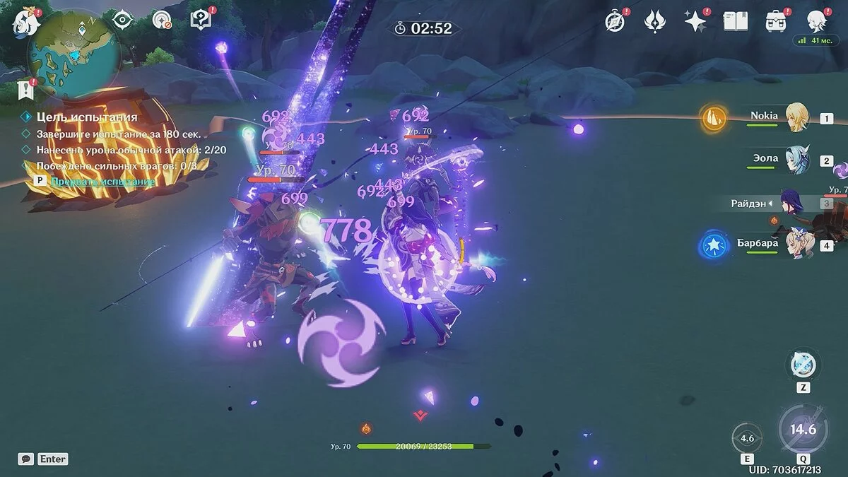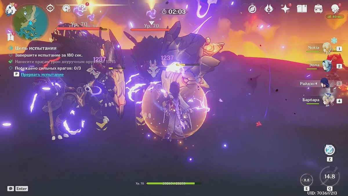 Так как вы столкнётесь со слаймами, магами Бездны и хиличурлами-стрелками стихии «Крио», с помощью Сян Лин вы без труда выполните первое требование. Для этого используйте элементальную способность героя, а также накопите достаточно энергии, чтобы применить Взрыв стихий. Атакуйте огнём всех Крио-врагов и создавайте эффекты «Таяние».