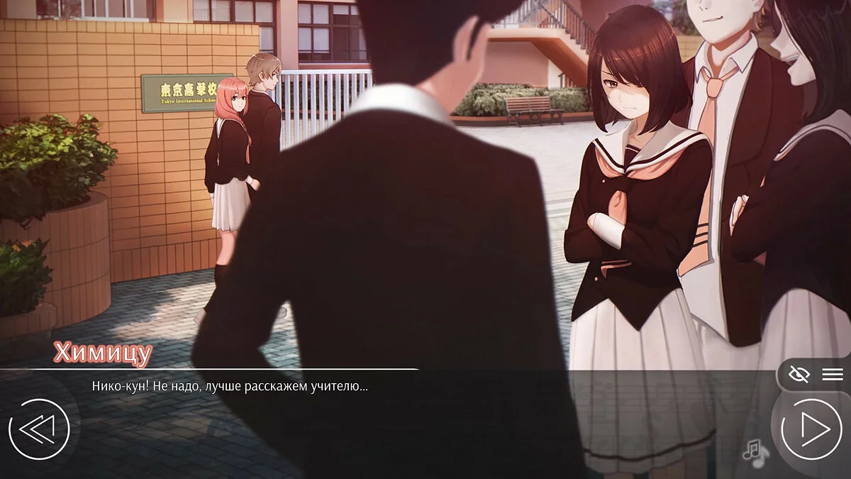 Во дворе школьники обижают старосту Ивамуру Кагомэ (герой не будет знать её имя, поэтому в диалогах первое время она отмечена по фамилии):