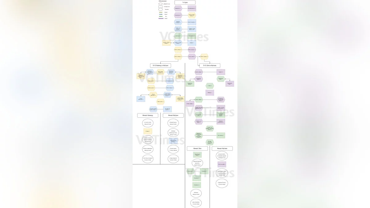 - 14-28 дни (3-4 недели) — выбор концовки. На этом этапе игроку придётся сделать небольшое количество действий и открыть один из финалов. В зависимости от набранного количества баллов события завершатся одной из задуманных концовок.