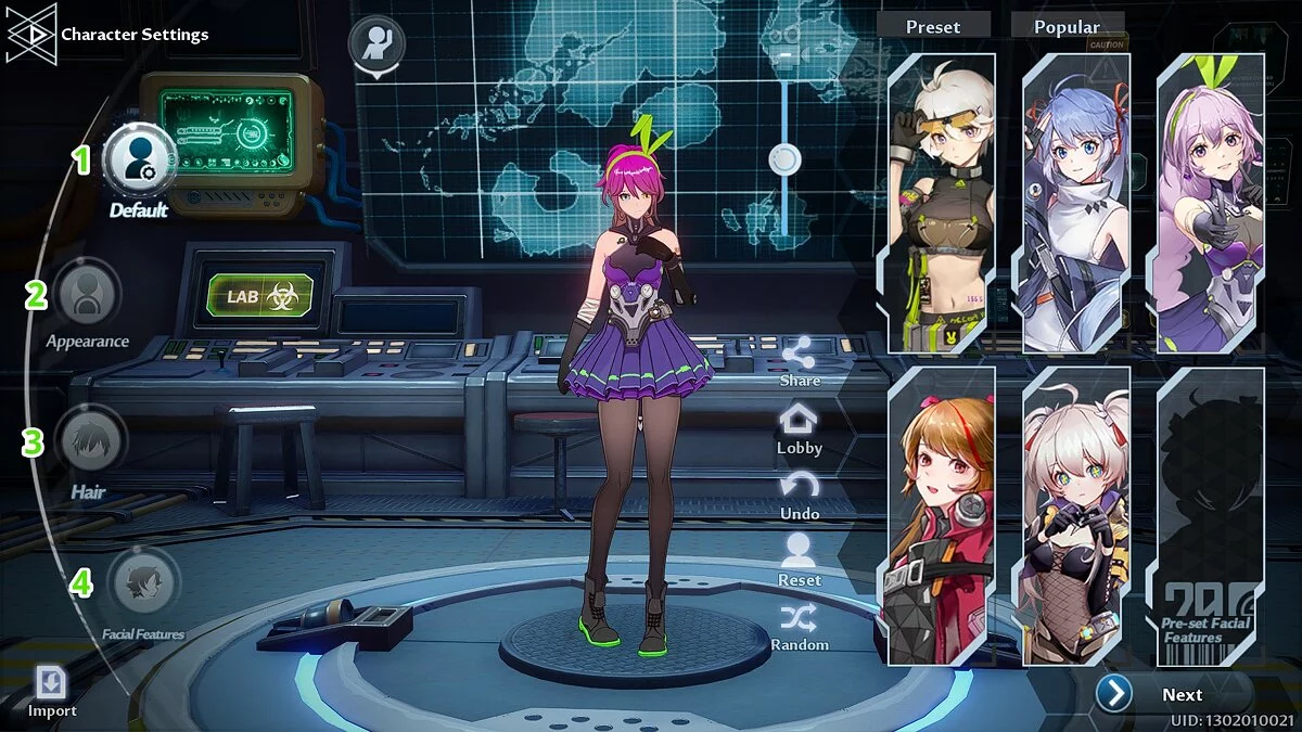 Import — введите UID пользователя в открывшемся диалоговом окне, чтобы скопировать настройки внешности его героя.