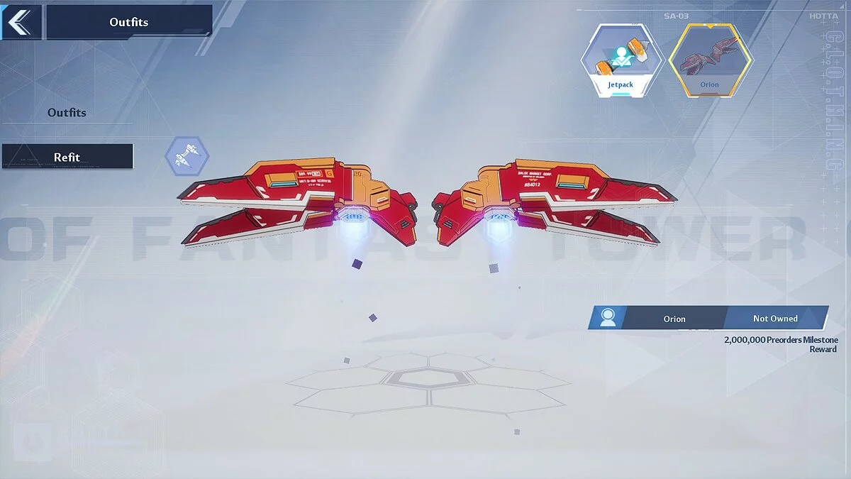 Помимо этого, в разделе Refit вы вправе выбрать внешний вид вашего джетпака. На данном этапе в Tower of Fantasy доступны всего два типа летательных аппаратов.