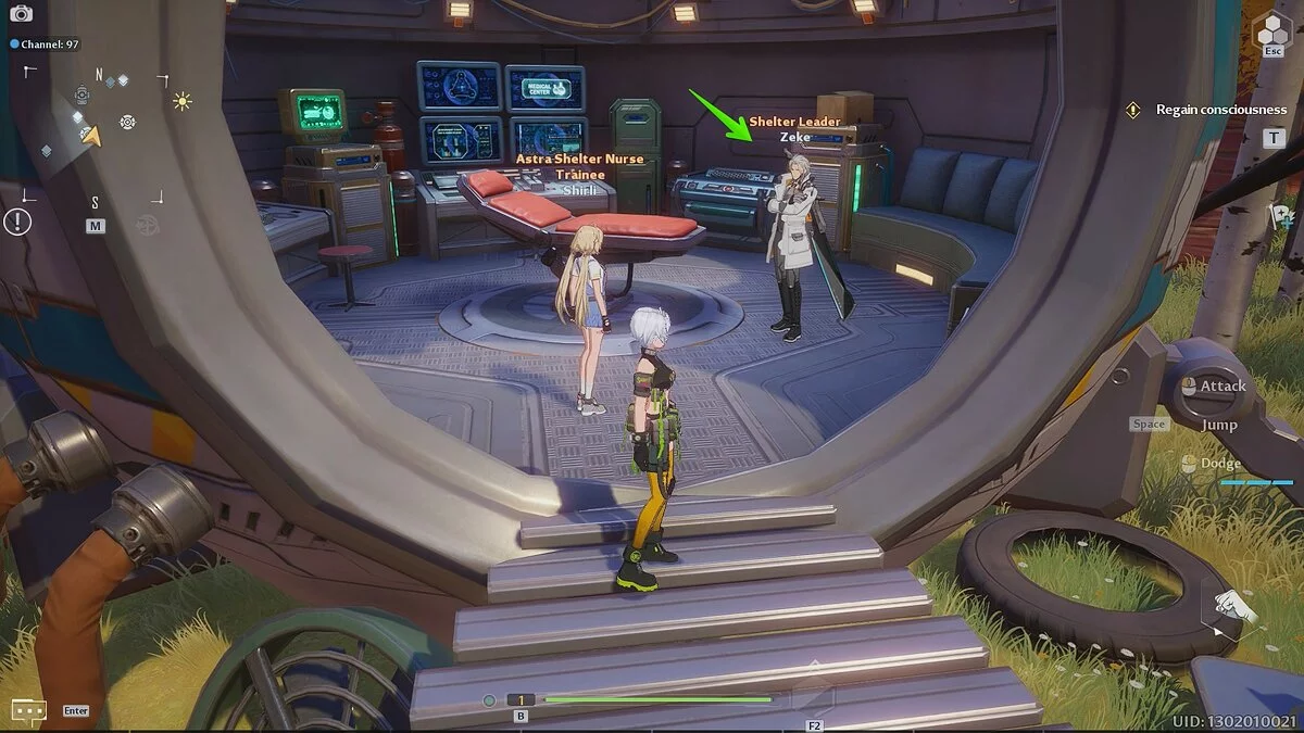 Побеседуйте с предводителем убежища Зиком (Zeke) и возьмите квест. На улице подберите меч, затем вернитесь в шатёр. После этого пообщайтесь с Ширли (Shirli) и проследуйте за ней в комплекс неподалёку. Смотрите видеоролик на движке, по окончании которого Селин предложит вам настроить внешность героя.