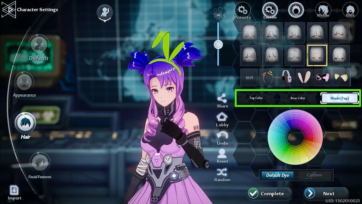 - Цвет верхней части волос (Top Color).