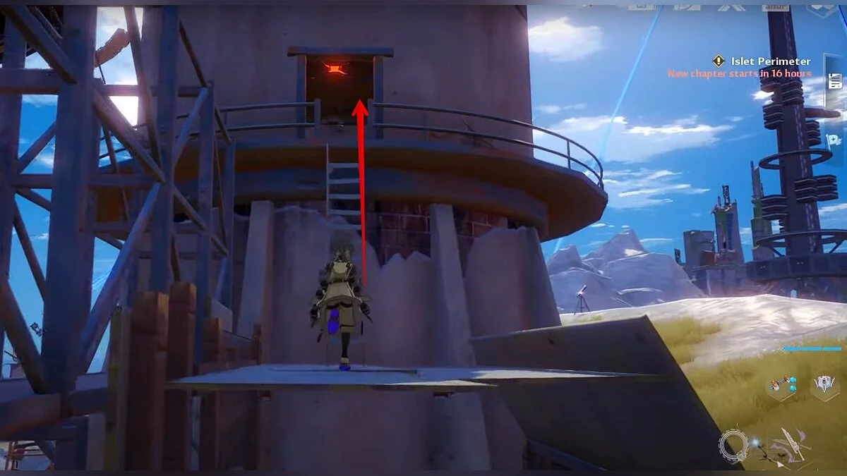 Этот девайс расположен восточнее ближайшего телепорта. Вам нужно забраться наверх по металлическим конструкциям.
