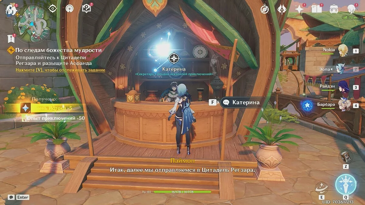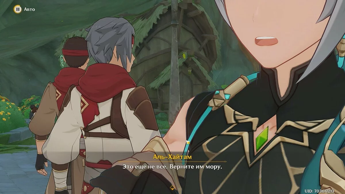 Добравшись до Порт-Ормос, побеседуйте с членами Академии и бегите в таверну «Джафар». В разговоре с членом «Аин аль-Ахмара» согласитесь отдать 500 000 моры и смотрите видеоролик с Аль-Хайтамом.