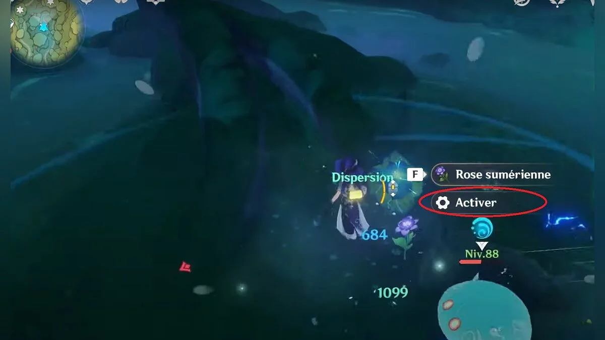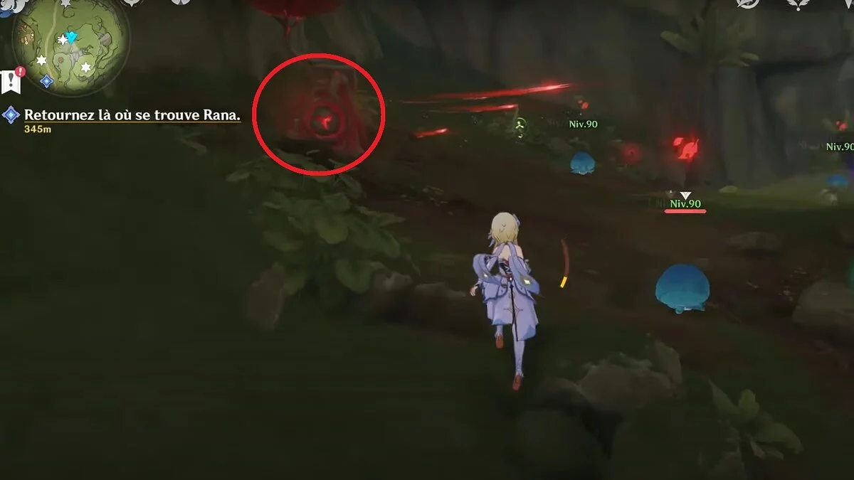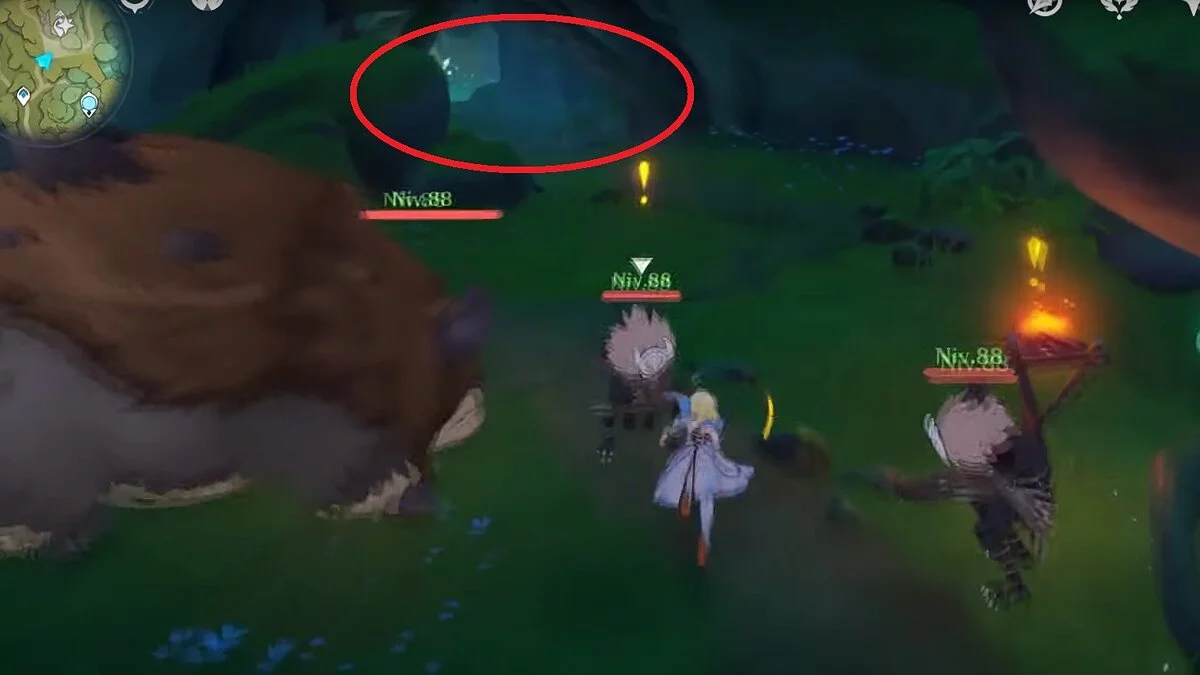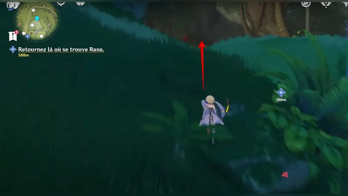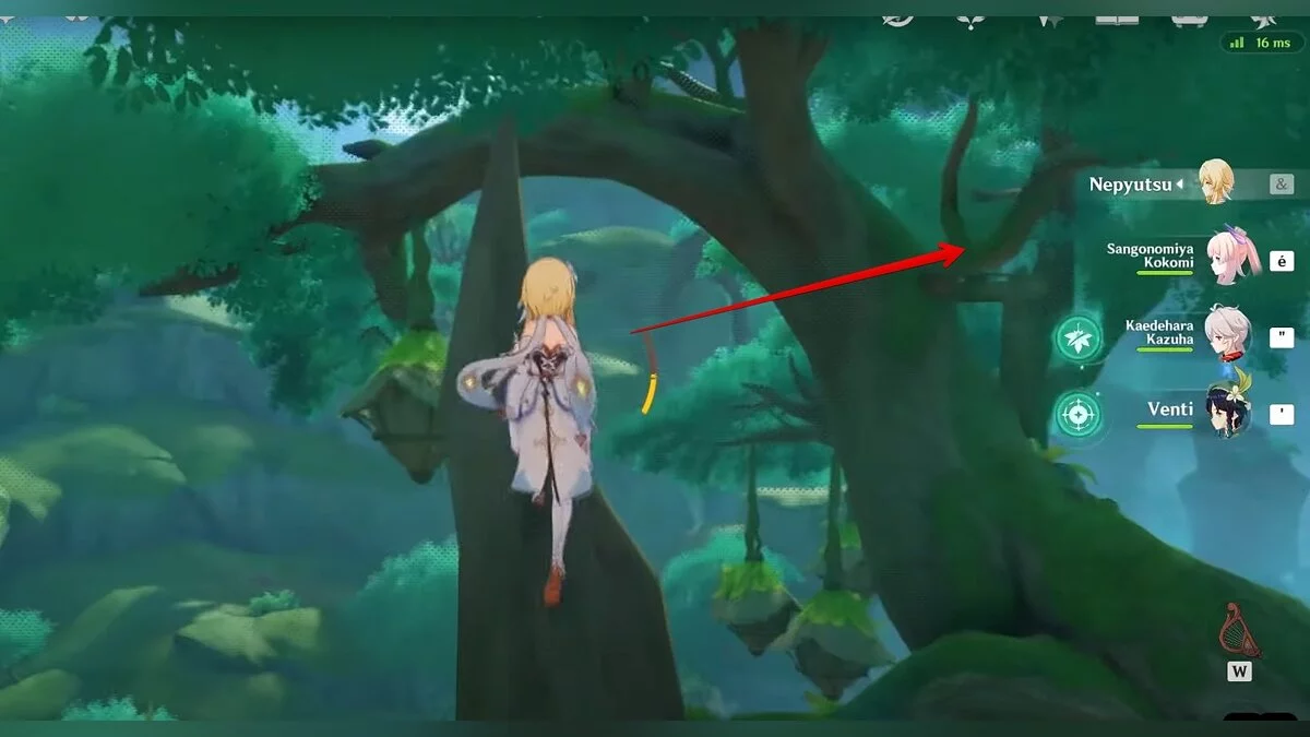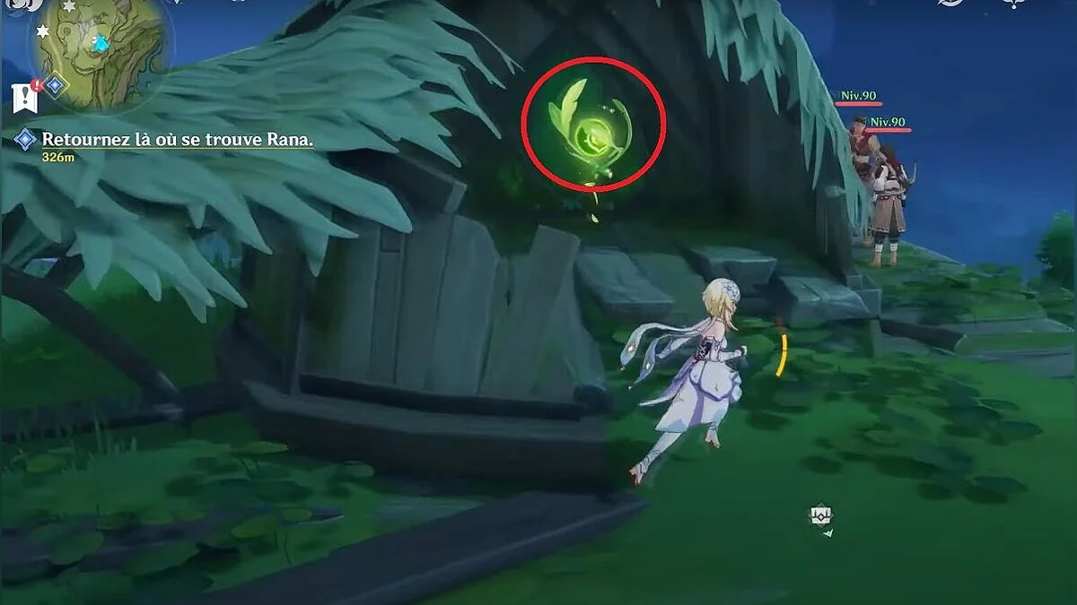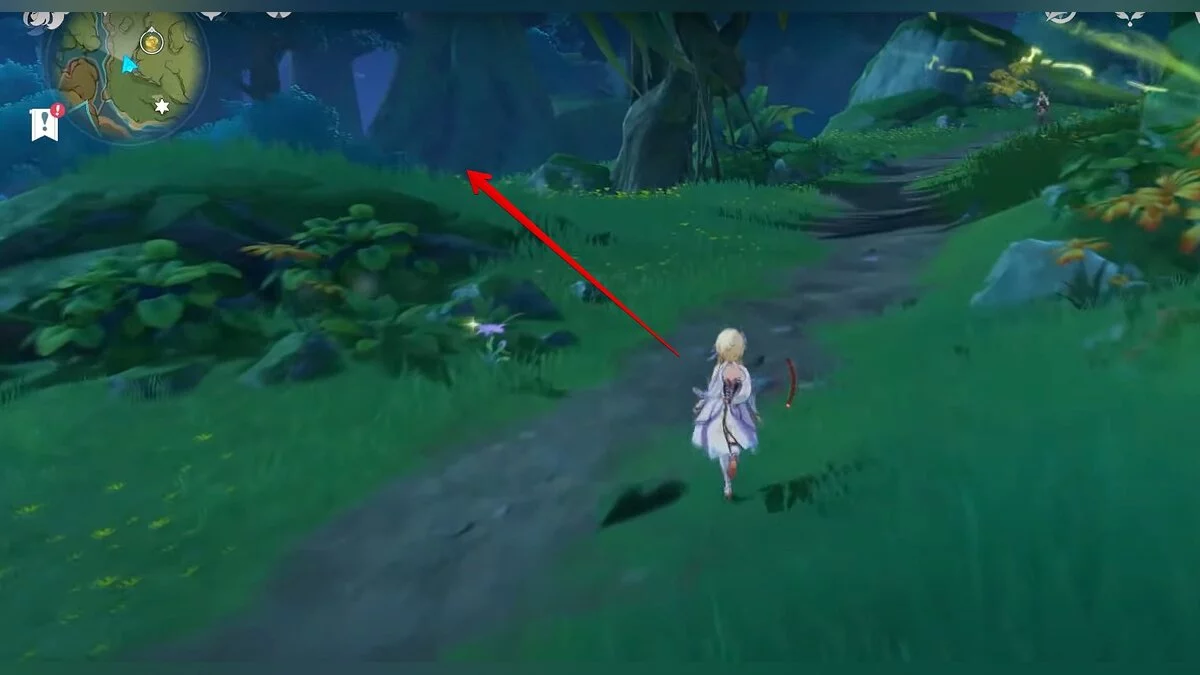 Бегите на северо-запад, пока не увидите камень, который обвязан лианами. Ударьте его дендро-стихией и заберите дендрокул.