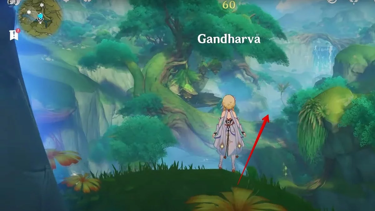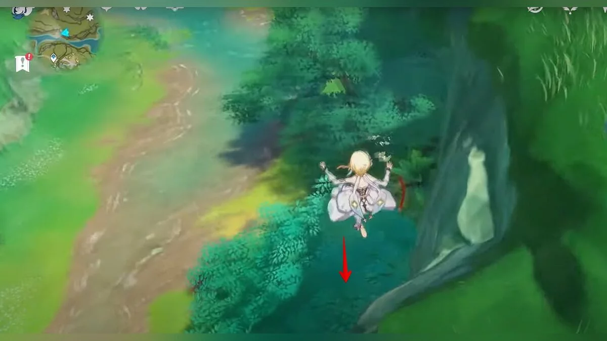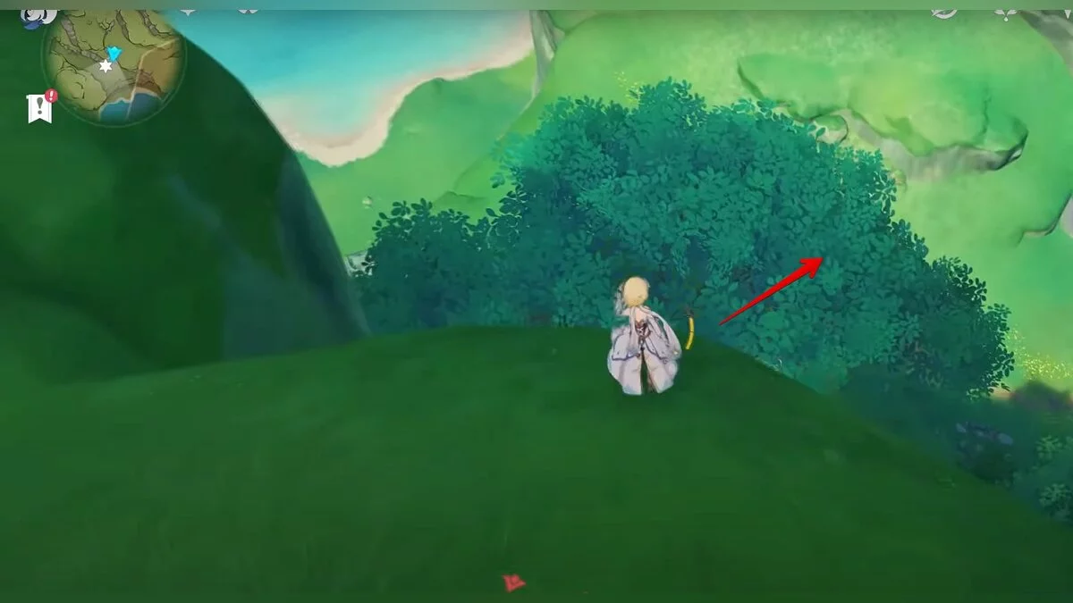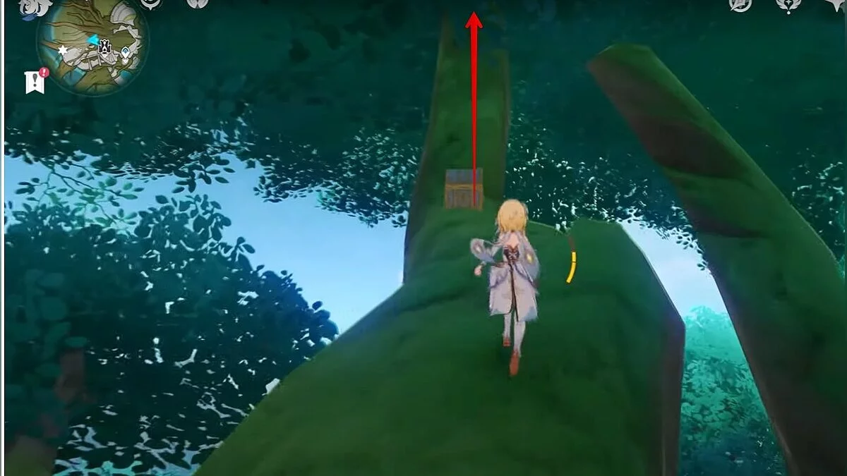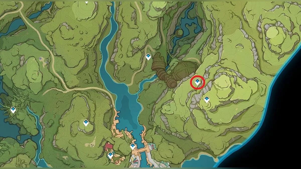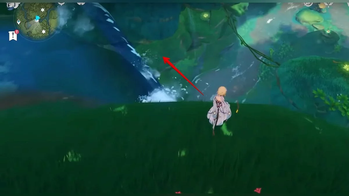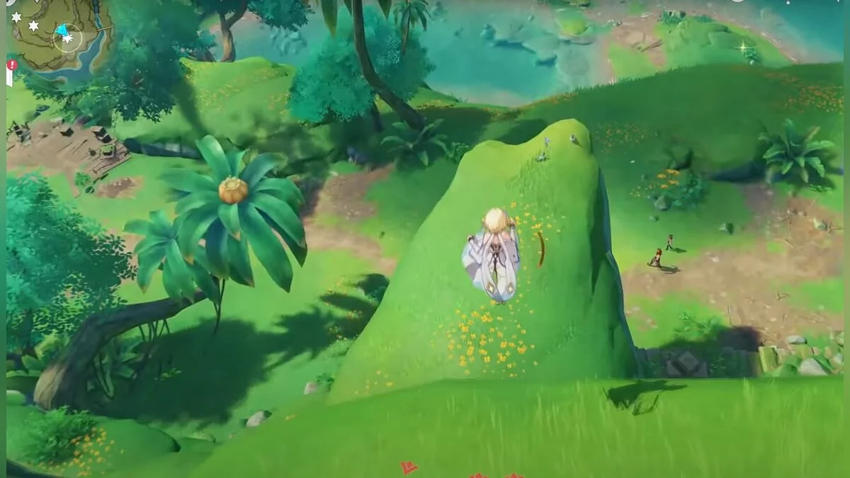 28-й дендрокул. От предыдущей точки бегите на юг и взбирайтесь на скалу. Вам нужно взаимодействовать с красным цветком, а затем использовать дендро-удар на камне с лианами. Дендрокул находится под ним.