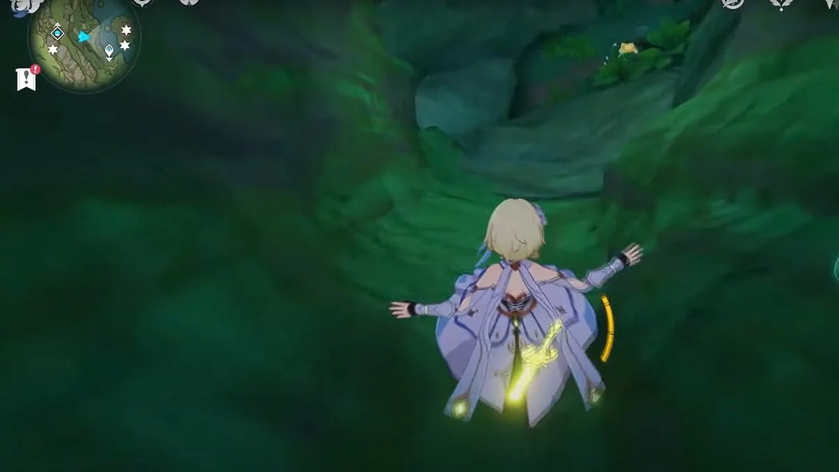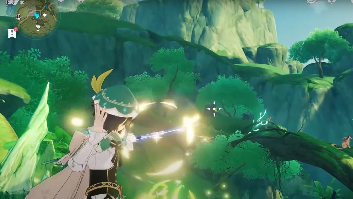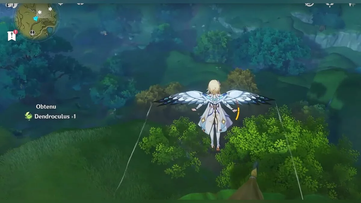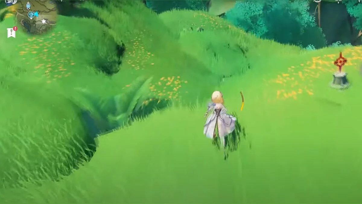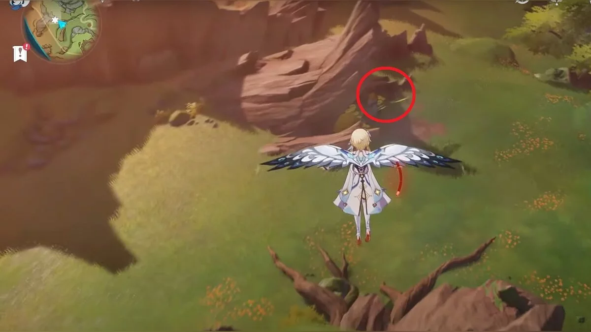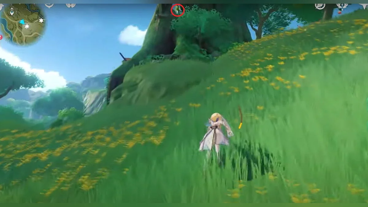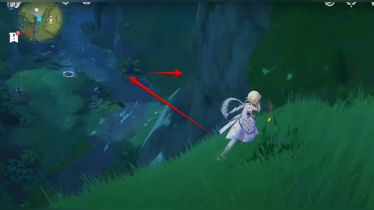 13-й дендрокул. От места, где вы подобрали предыдущий дендрокул, двигайтесь на север, а затем карабкайтесь по скалам на самый верх. Активируйте бутон стихией Дендро, чтобы вызвать четырёхлистный символ, за который можно зацепиться. Используйте его, чтобы подобрать дендрокул.