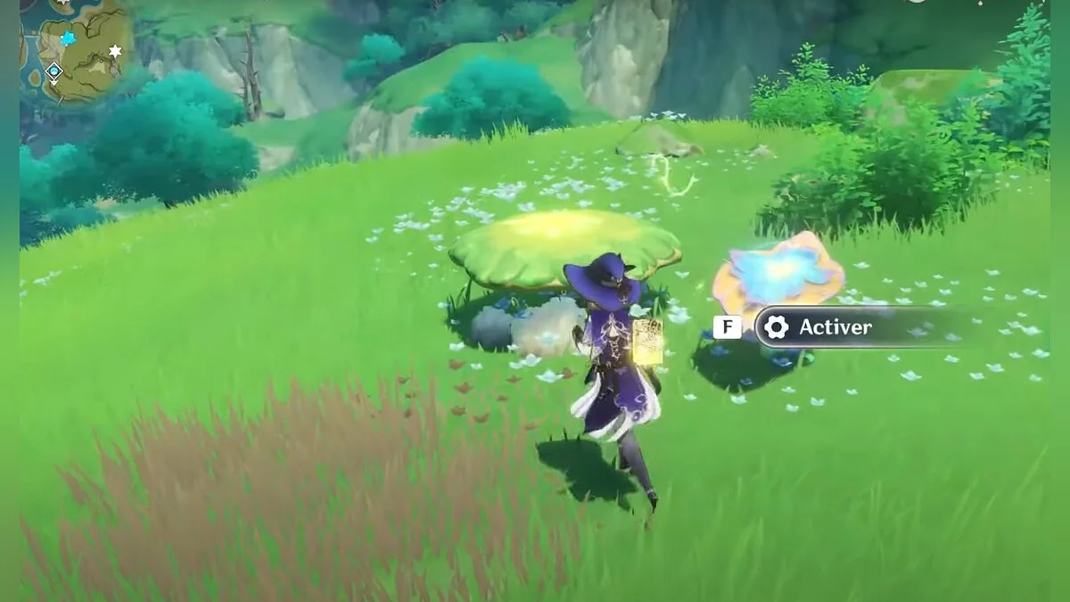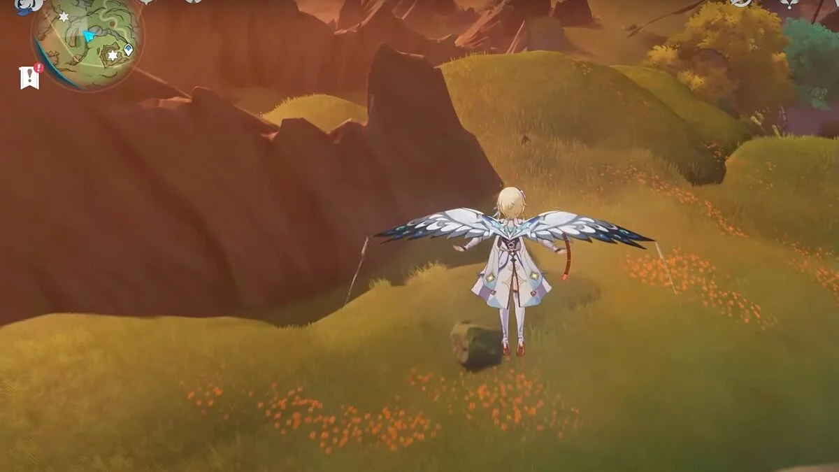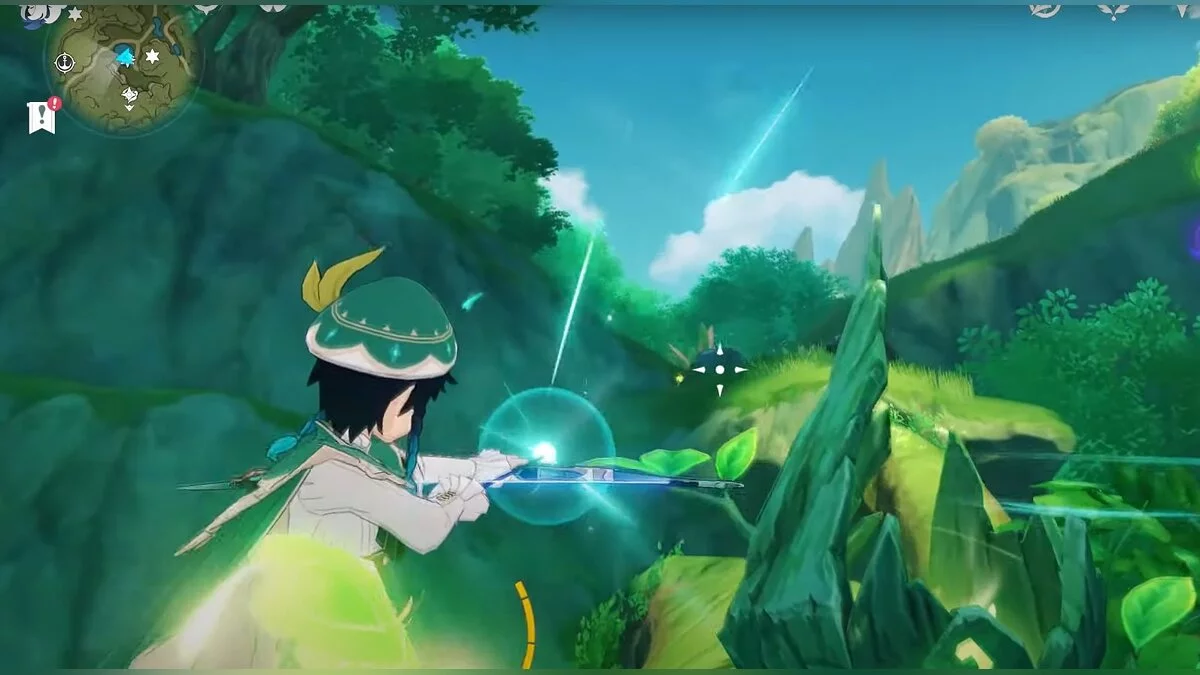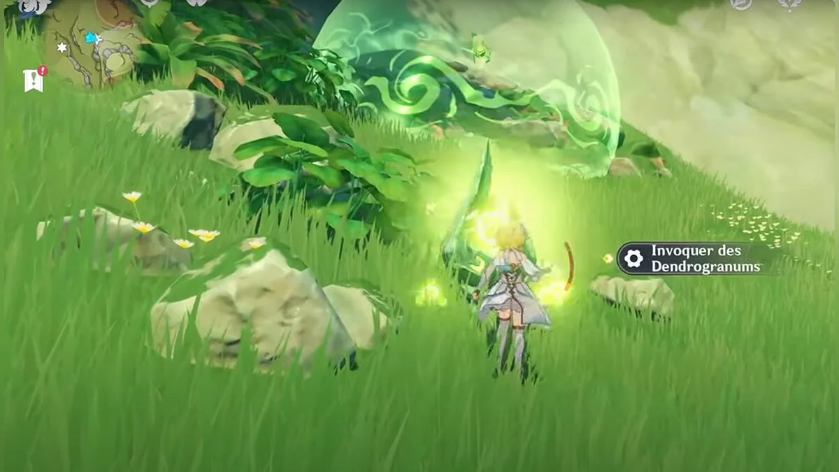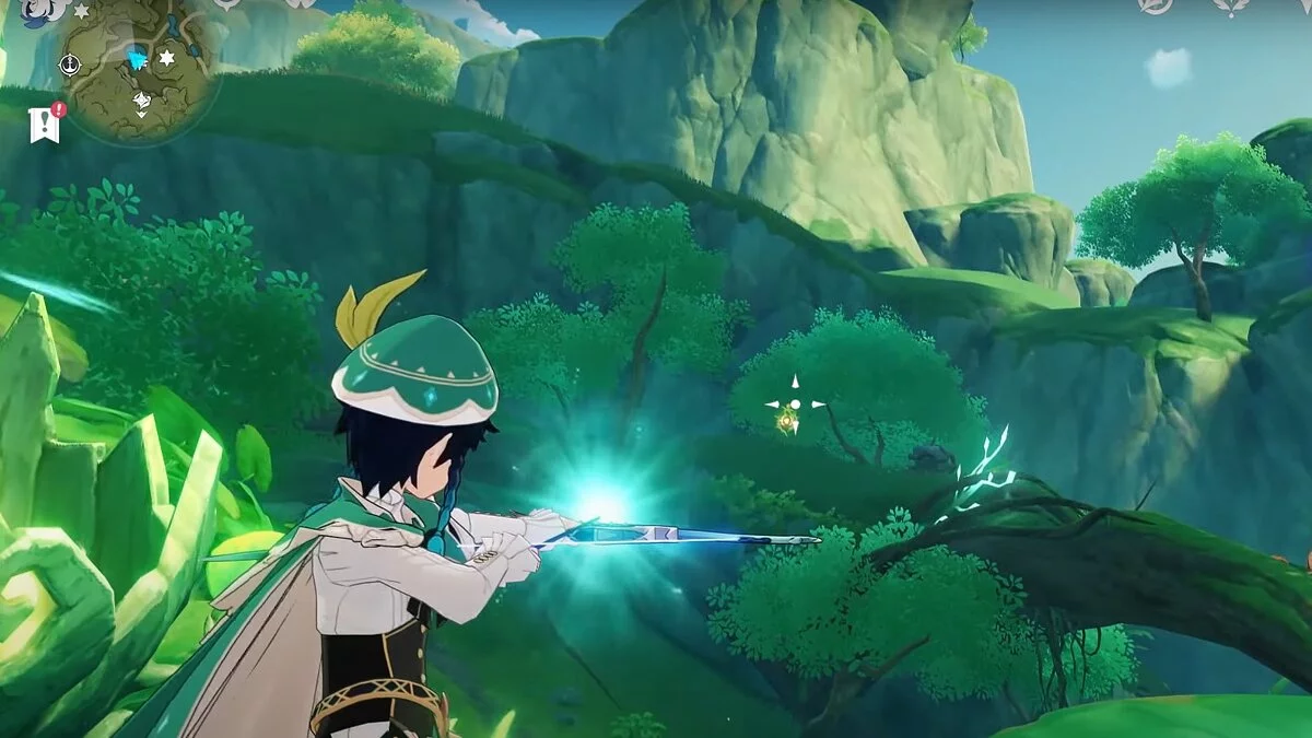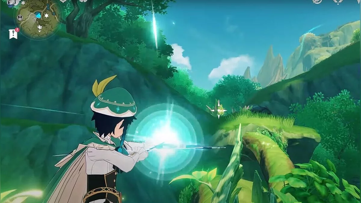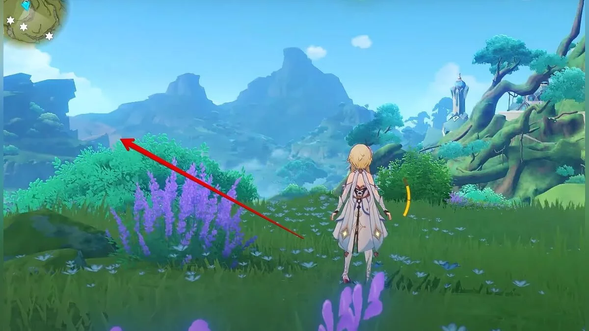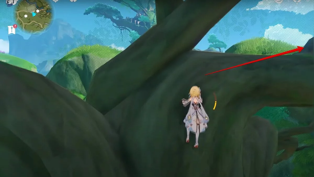 13-й дендрокул. От места, где вы подобрали предыдущий дендрокул, двигайтесь на север, а затем карабкайтесь по скалам на самый верх. Активируйте бутон стихией Дендро, чтобы вызвать четырёхлистный символ, за который можно зацепиться. Используйте его, чтобы подобрать дендрокул.