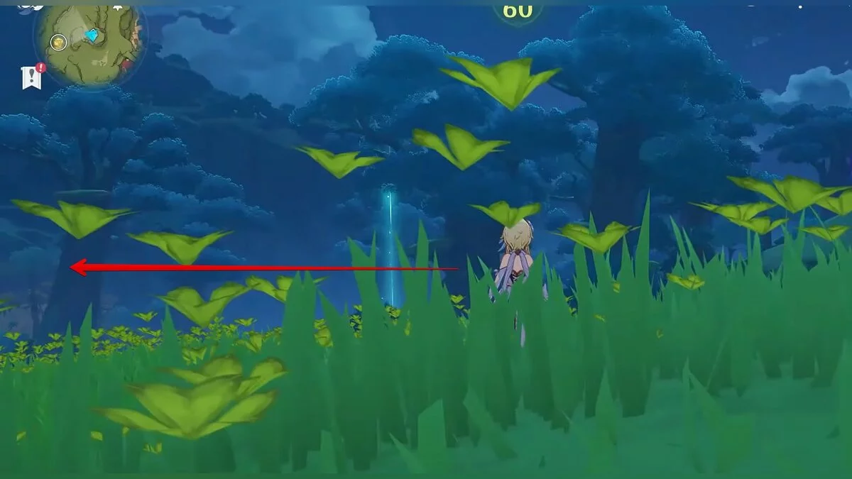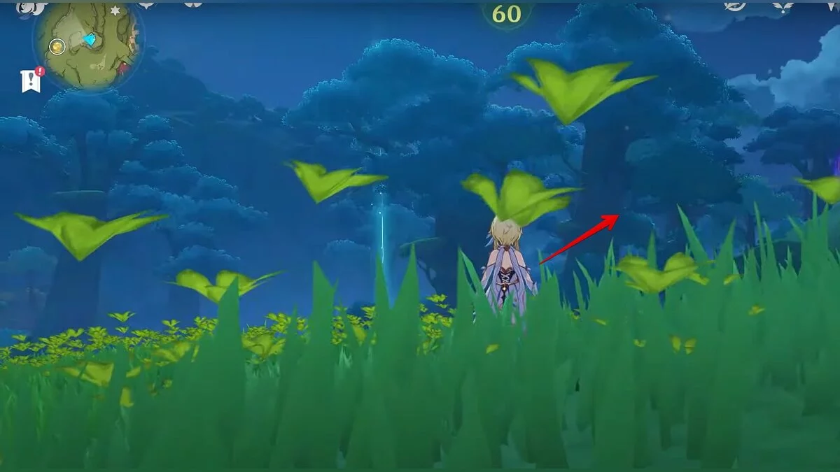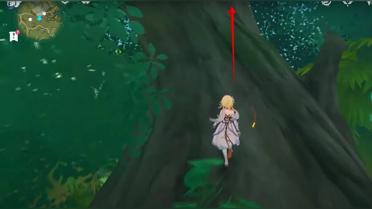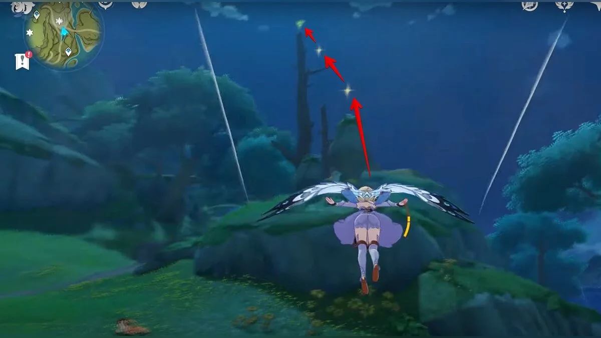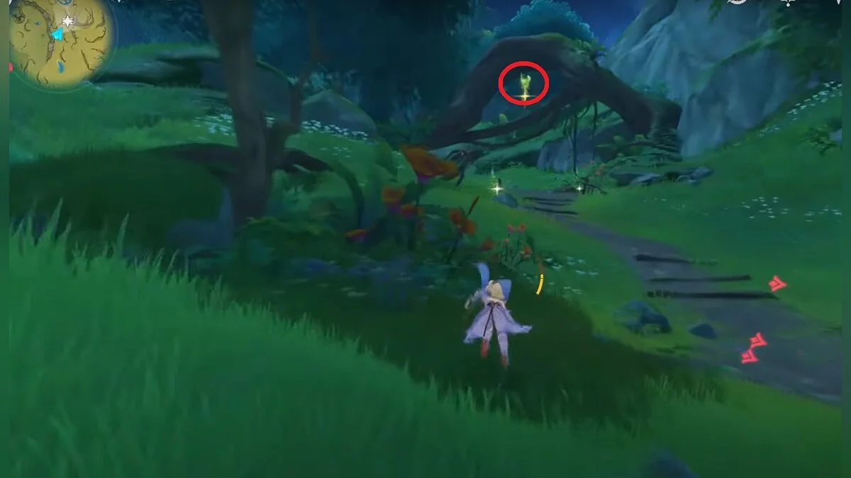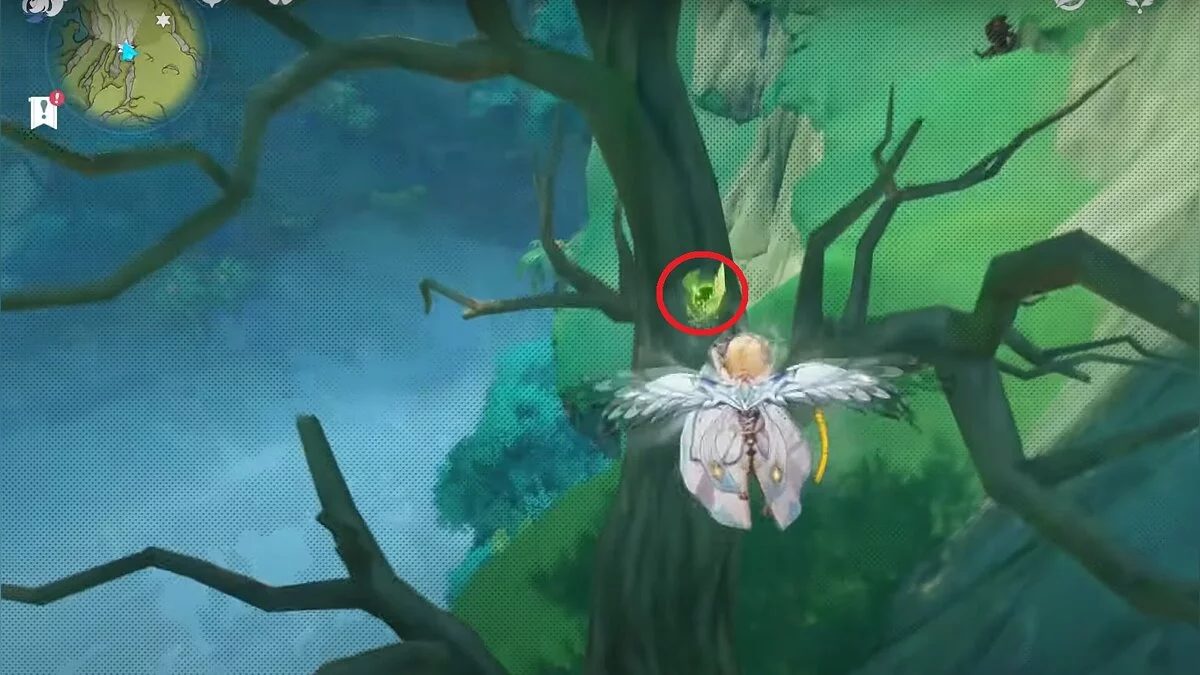 Бегите на север. Ресурс расположен на вершине сухого дерева. Воспользуйтесь светлячками, чтобы добраться до него.