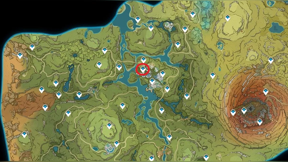 Местоположение всех статуй Дендро Архонотов указаны на карте.