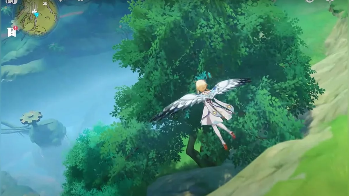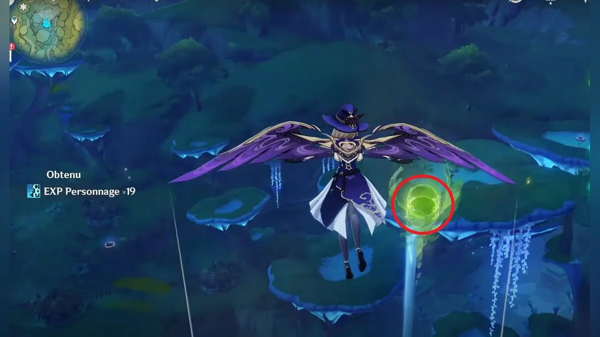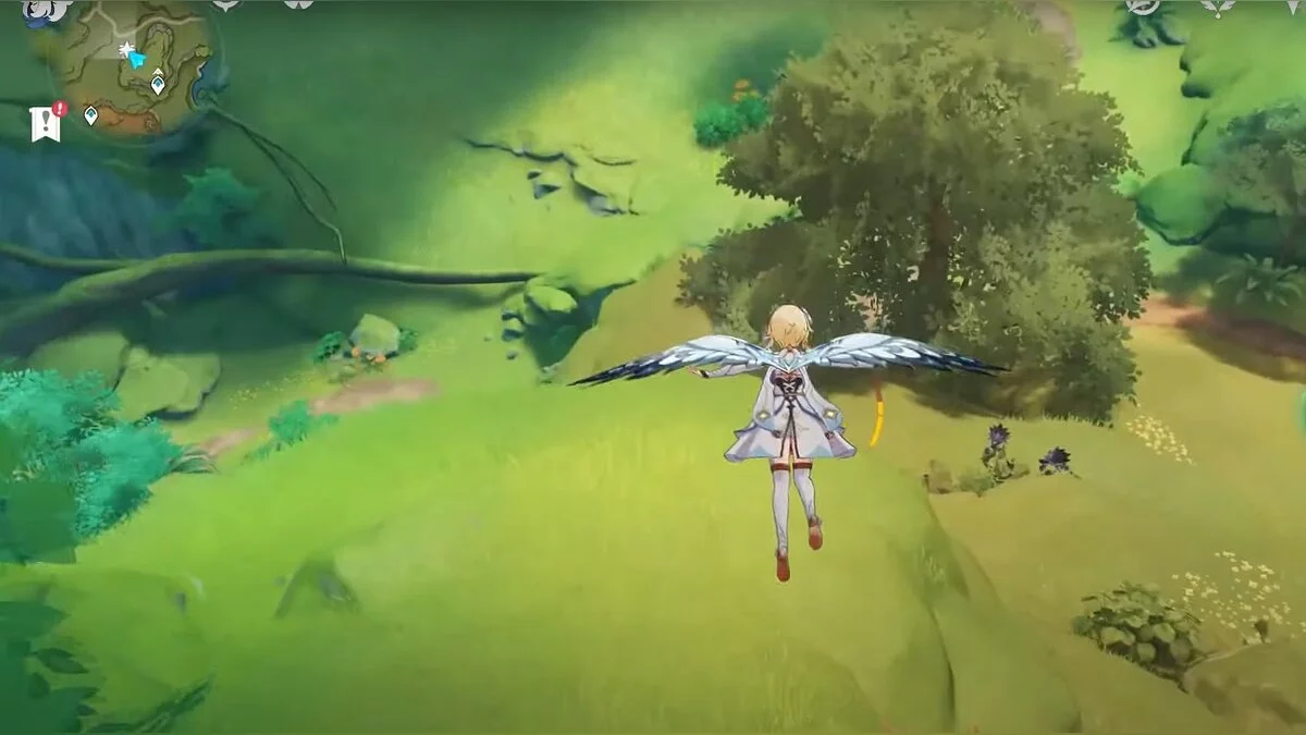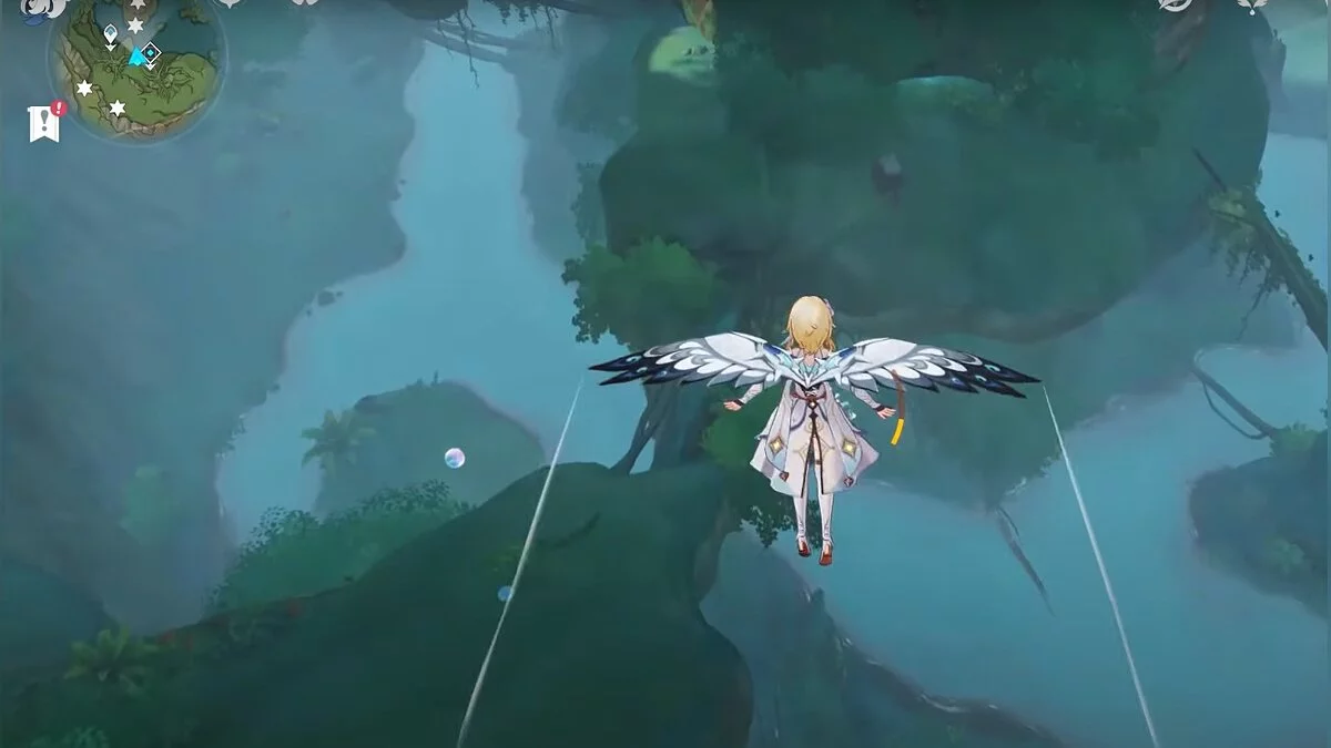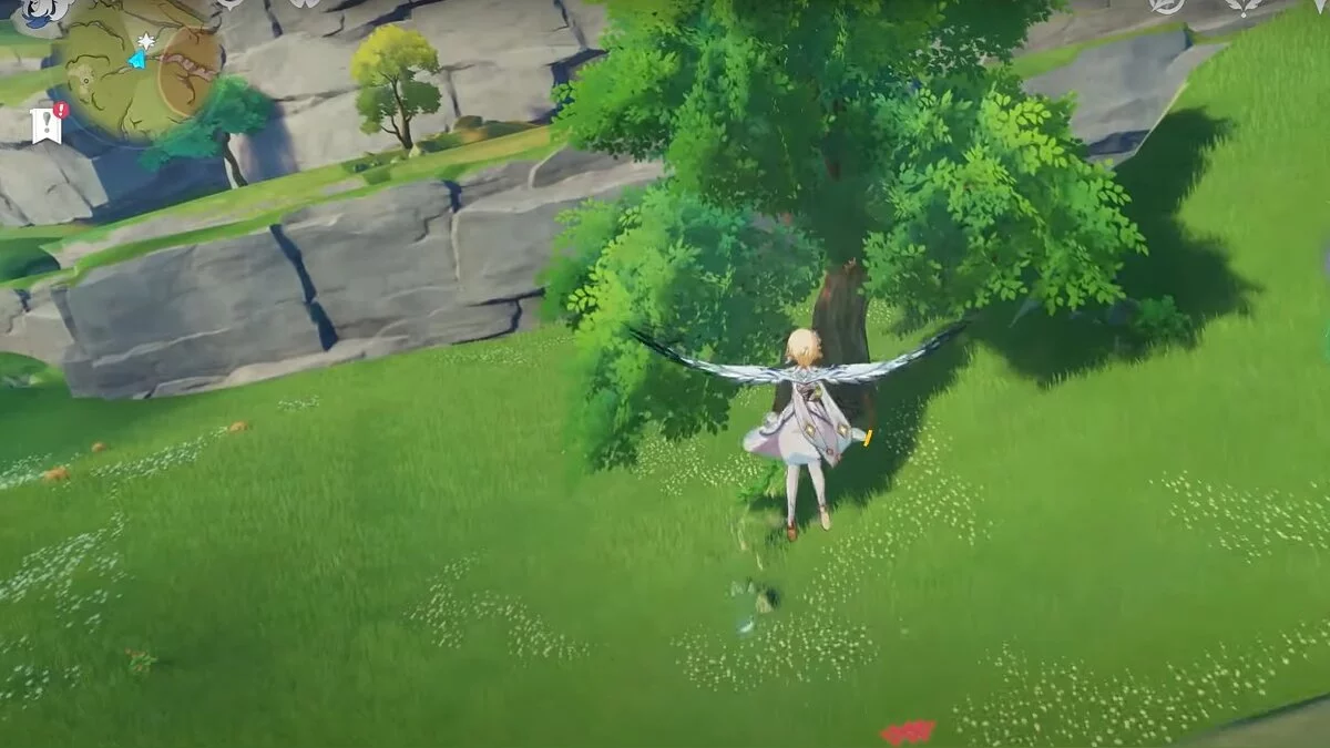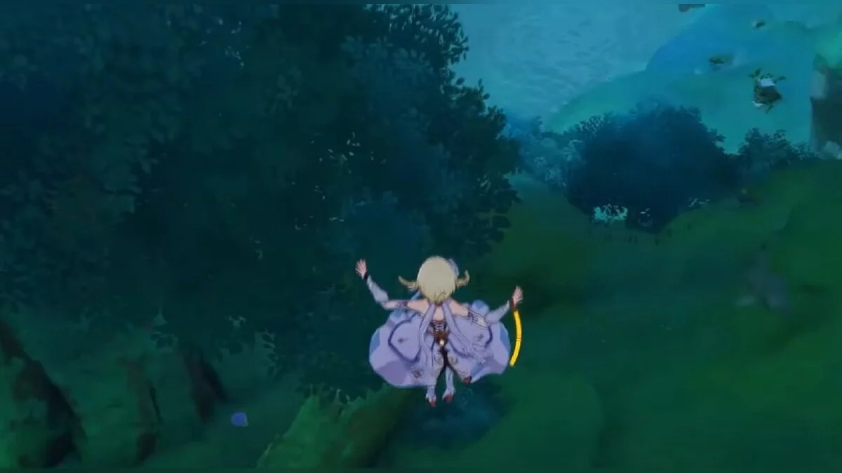 Бегите на восток, поднимайтесь на возвышенность и взаимодействуйте со светлячком, чтобы взлететь повыше. Слева от него парит дендрокул.