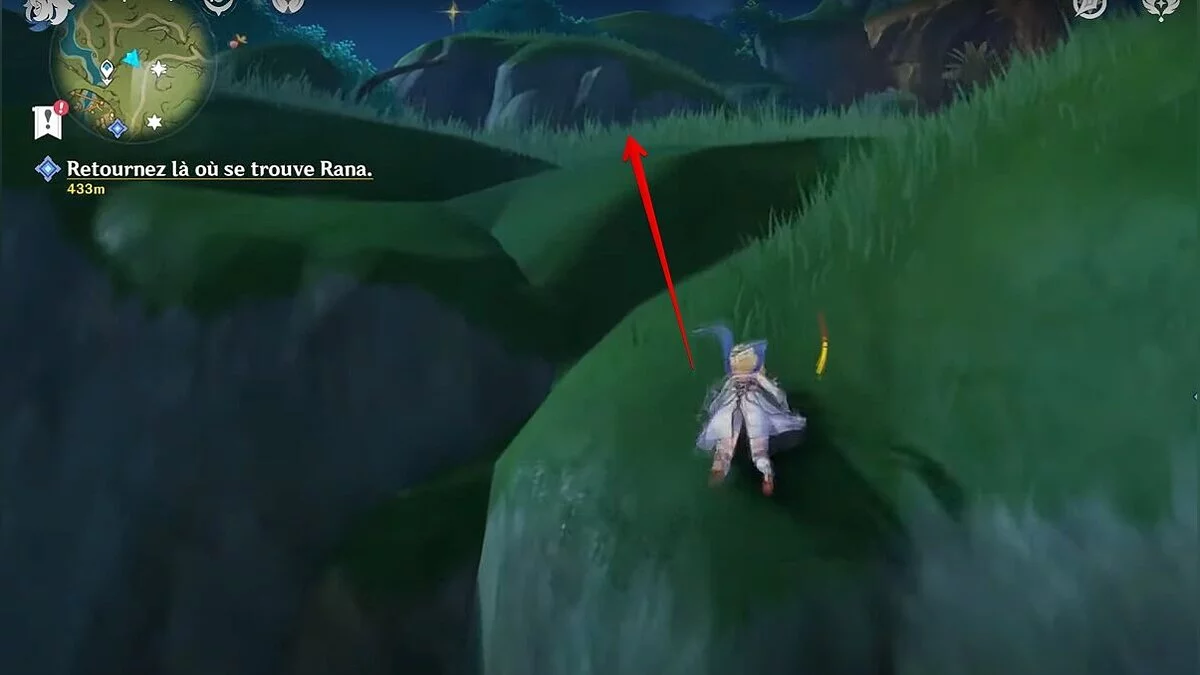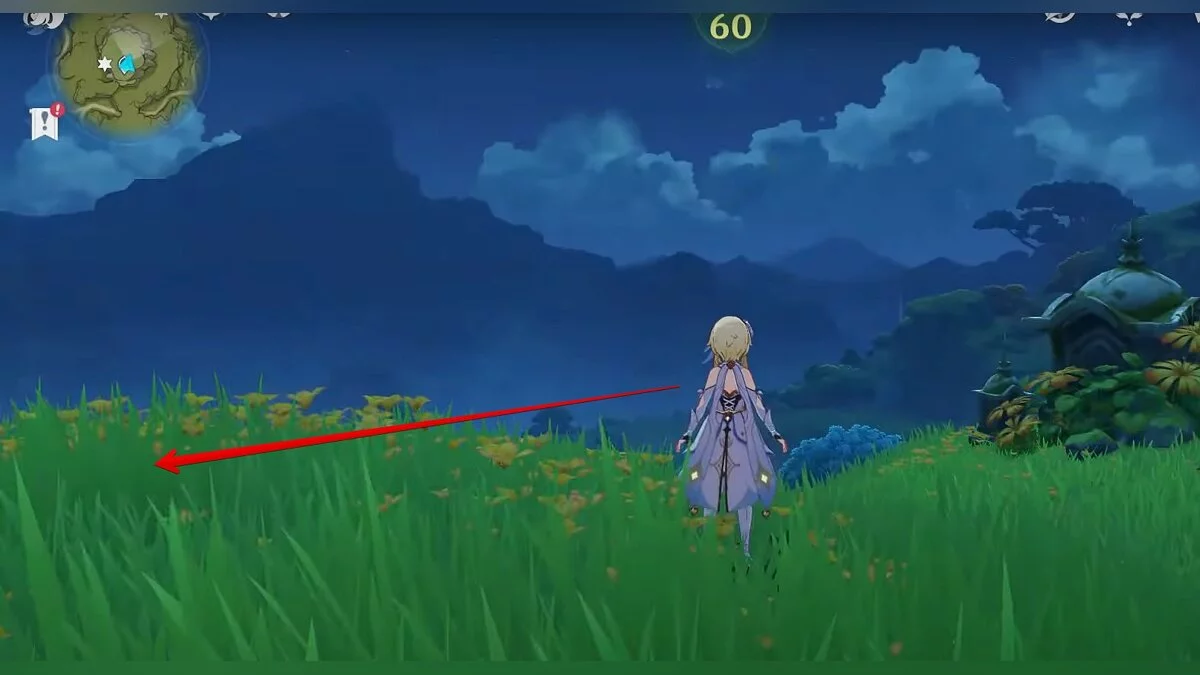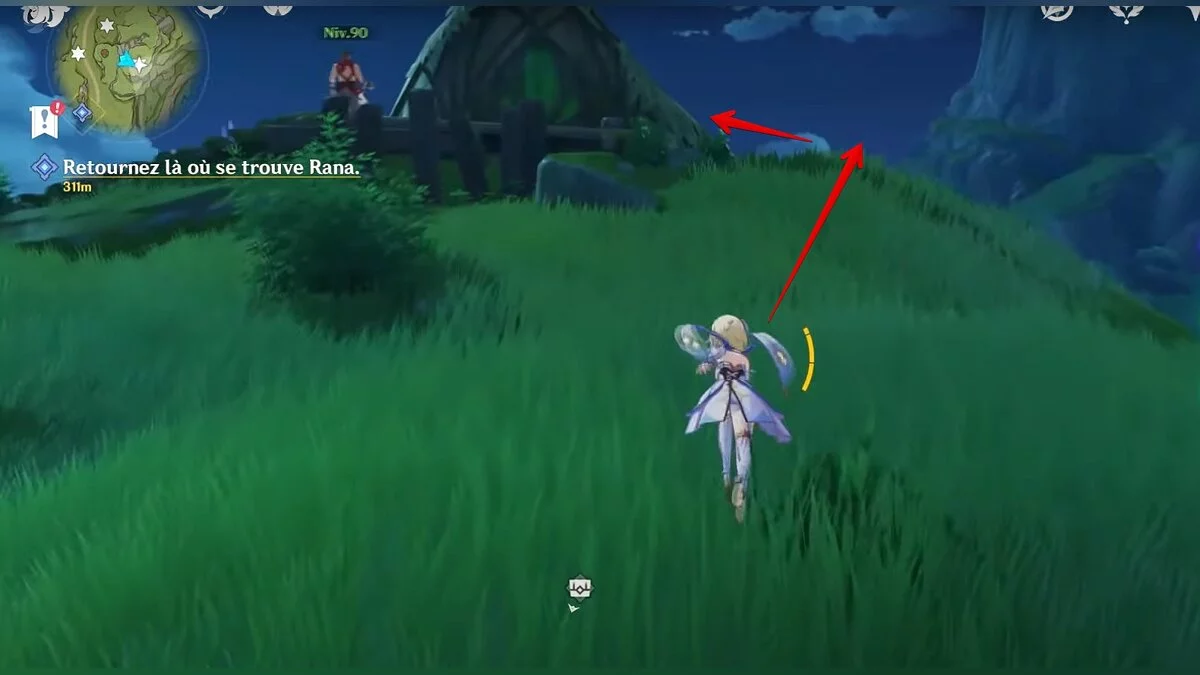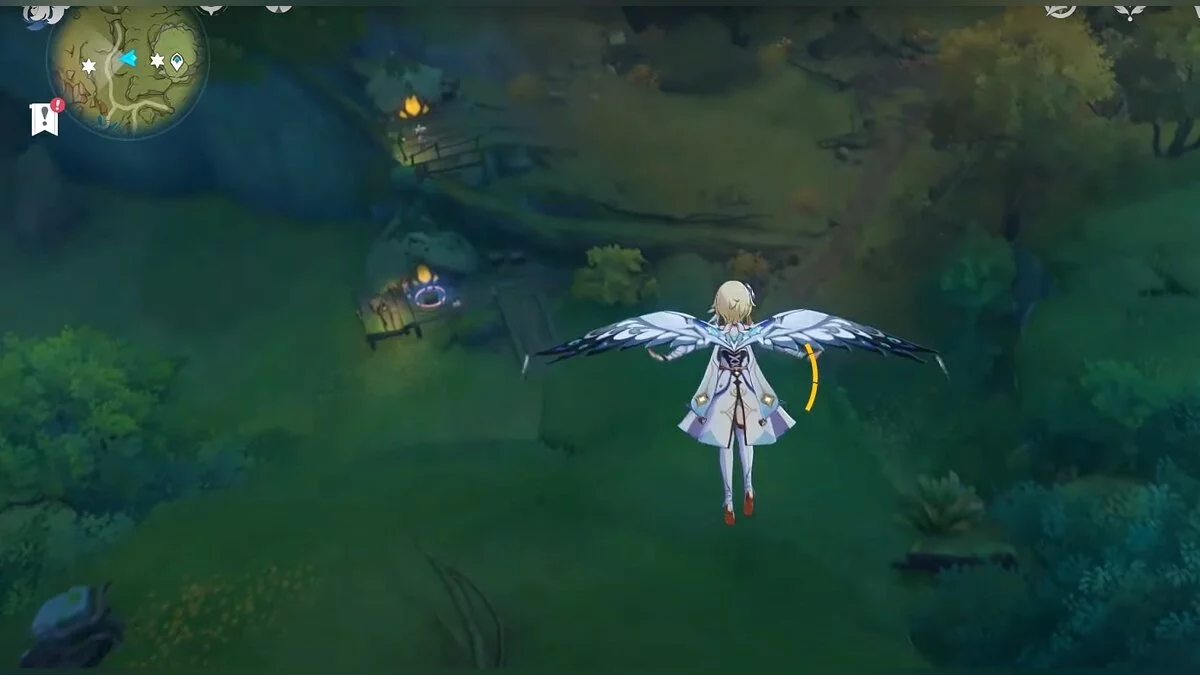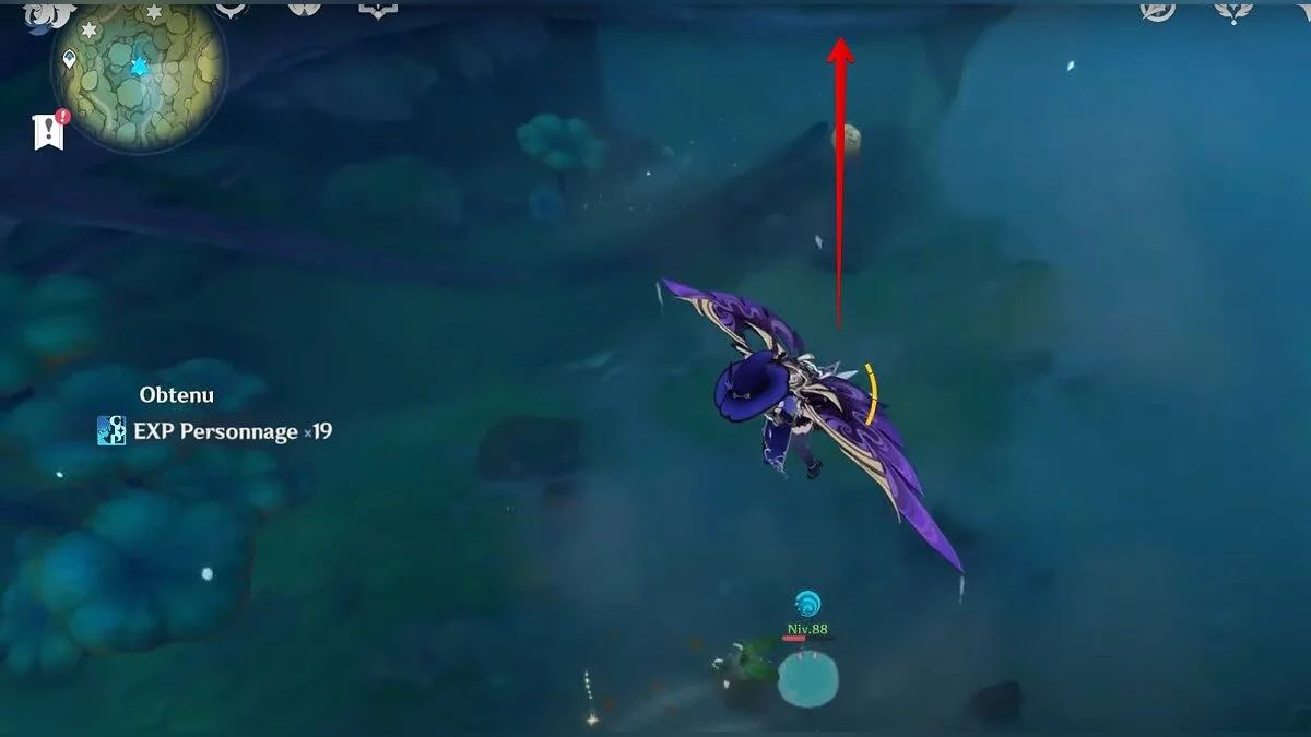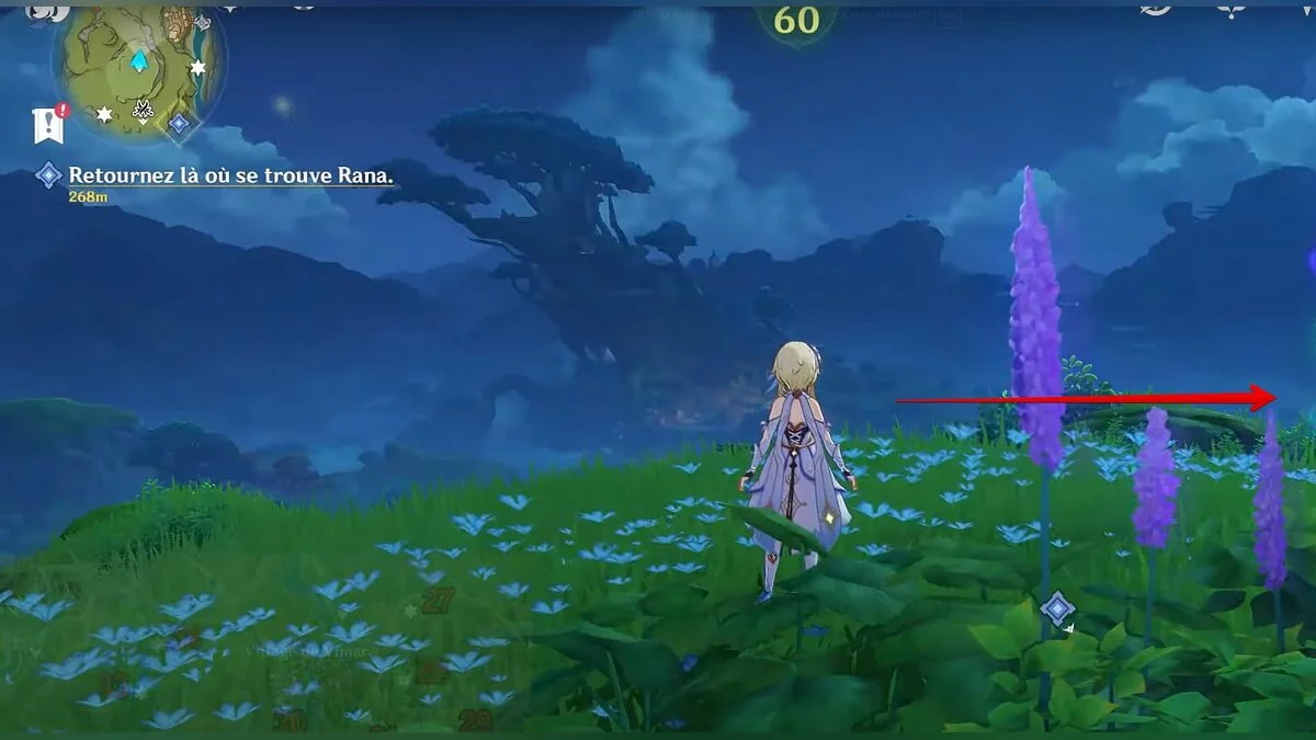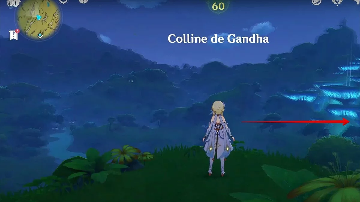 Бегите на восток, поднимайтесь на возвышенность и взаимодействуйте со светлячком, чтобы взлететь повыше. Слева от него парит дендрокул.