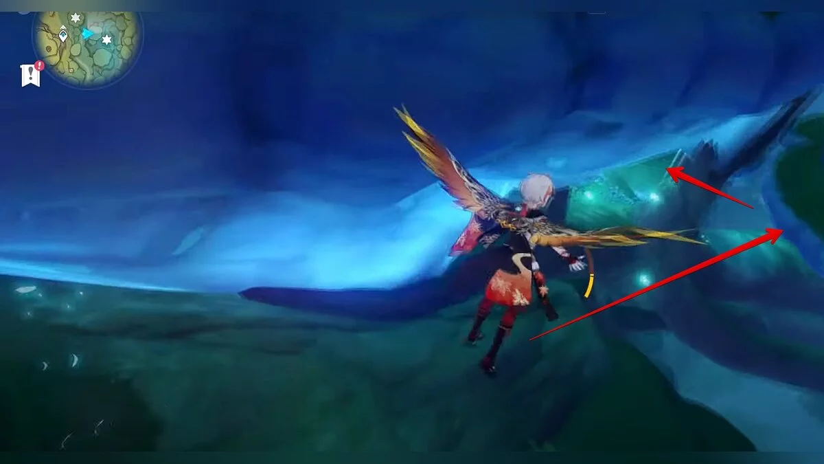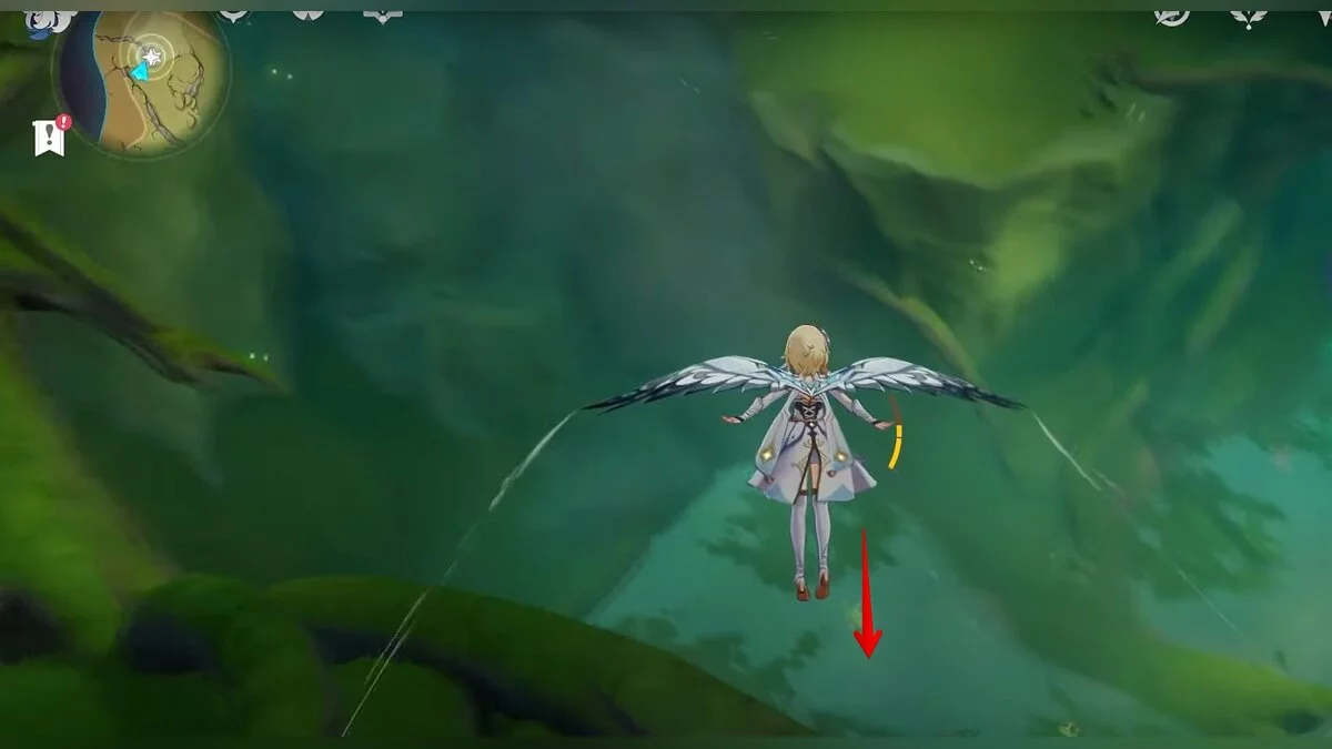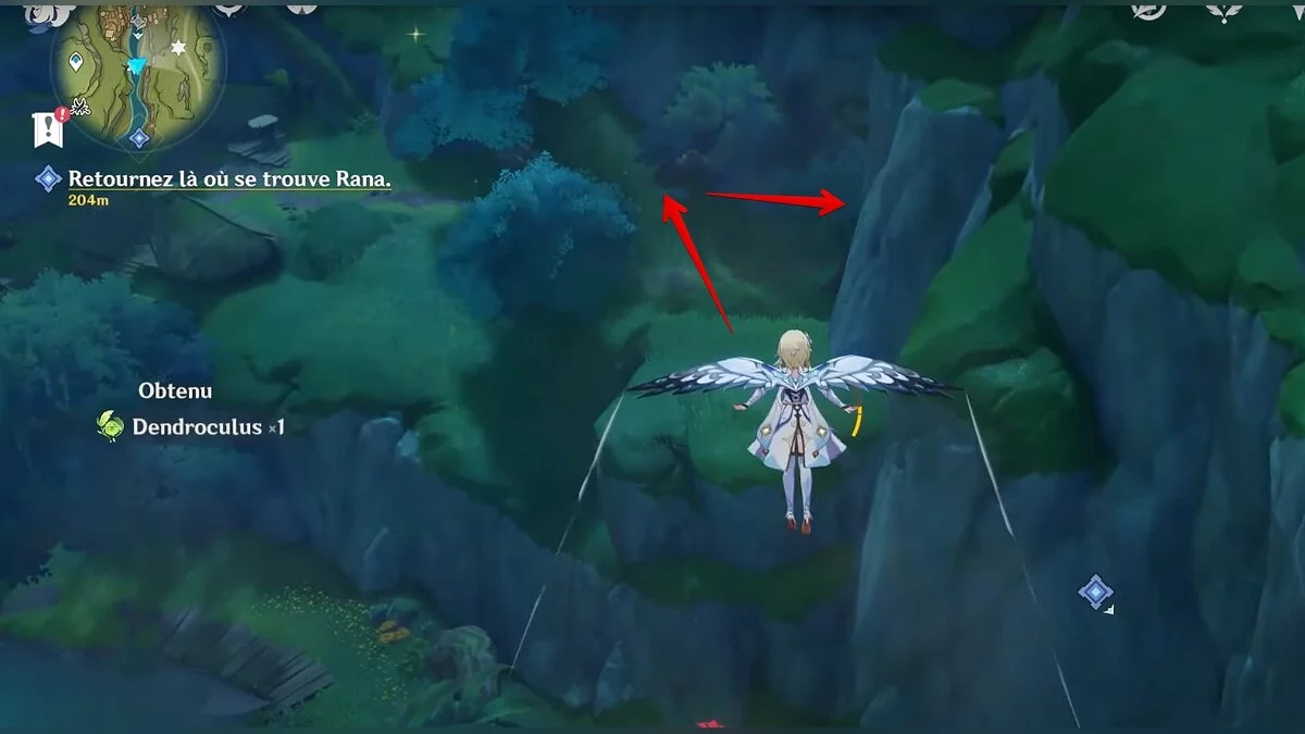 Развернитесь лицом на восток. Подойдите к краю скалы и планируйте вниз. Под каменным сводом у самой земли парит очередной дендрокул.