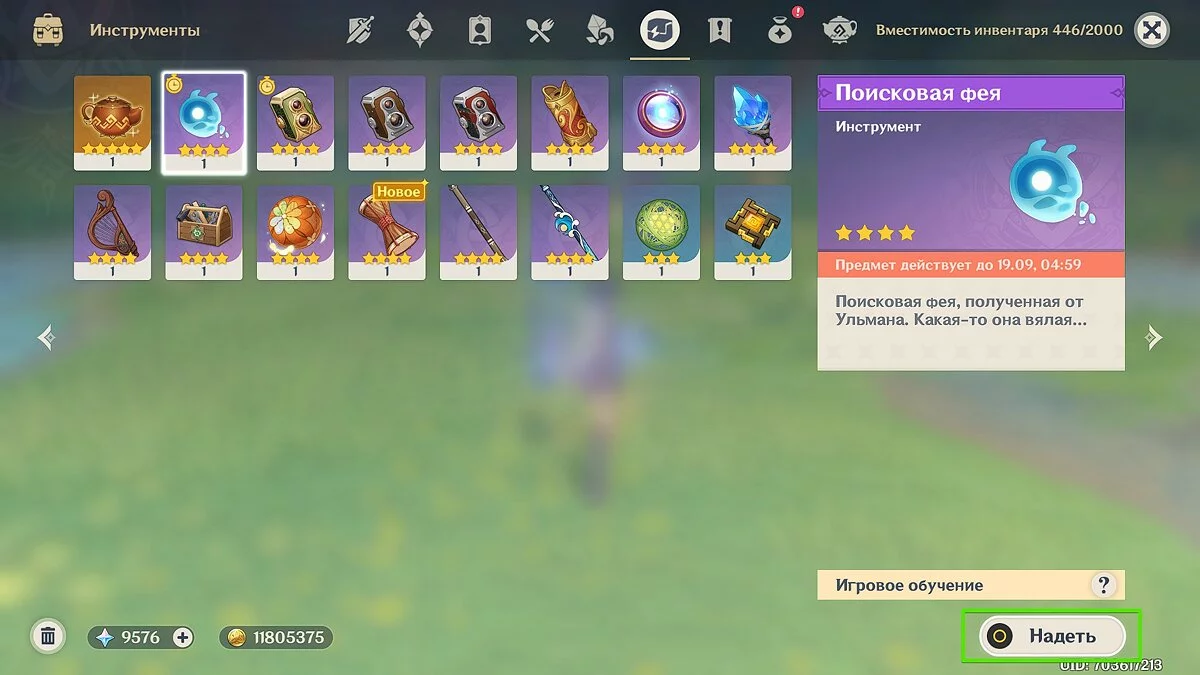 После беседы с Ульманом вы получите поисковую фею. Откройте инвентарь, перейдите во вкладку «Инструменты» и наденьте предмет.