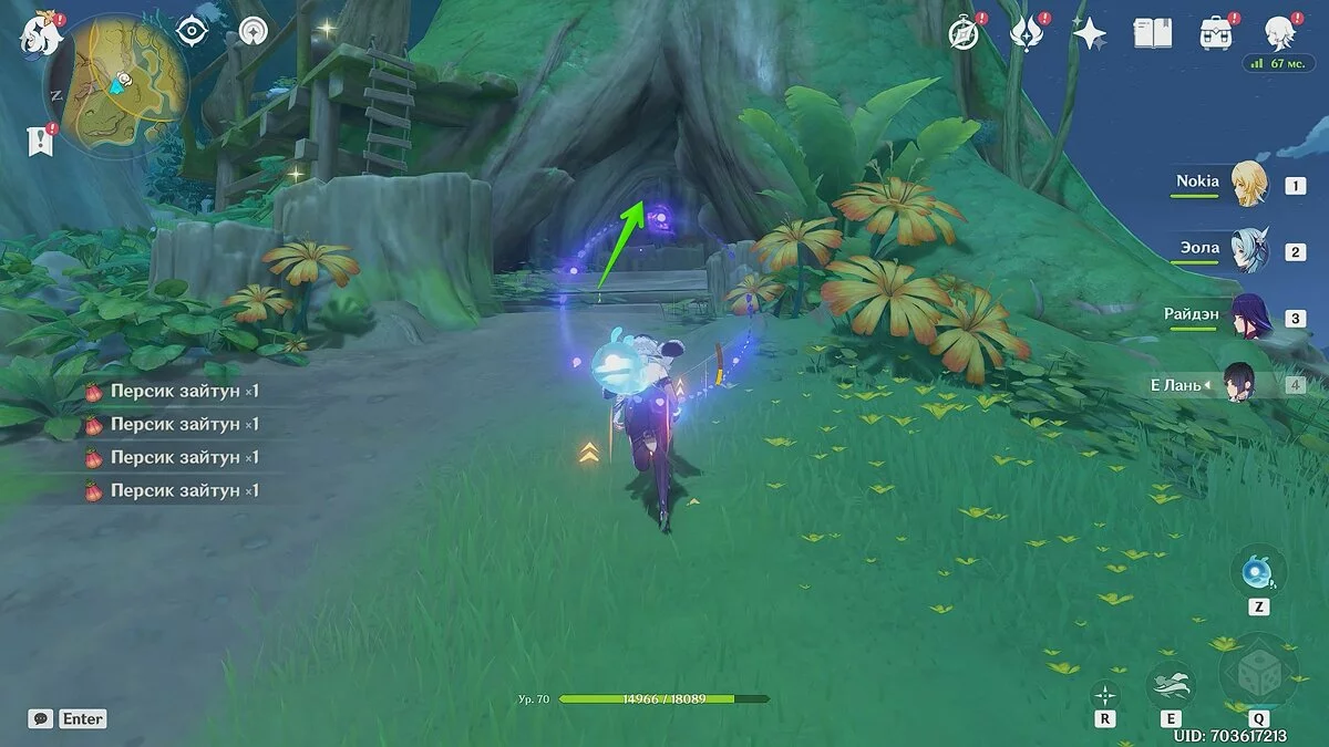 Вам нужно одолеть несколько плесенников и группу крио слаймов. Сделав это, неподалёку появятся зелёные энергетические шары. Соберите их и откройте сундук.