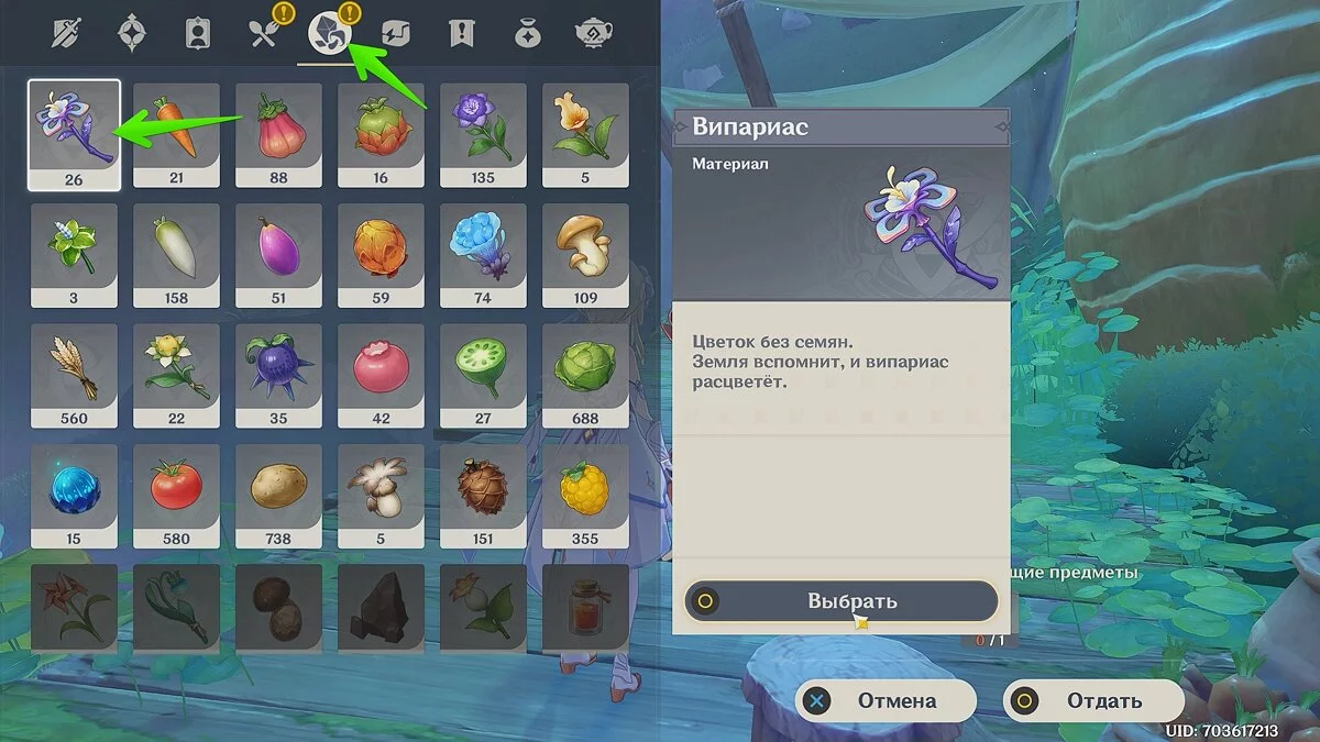 Примечание: Випариас можно выбрать в разделе «Ресурсы».