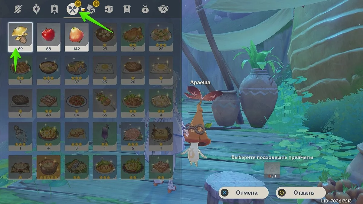 Примечание: Гриб-звезду можно выбрать в разделе «Еда».