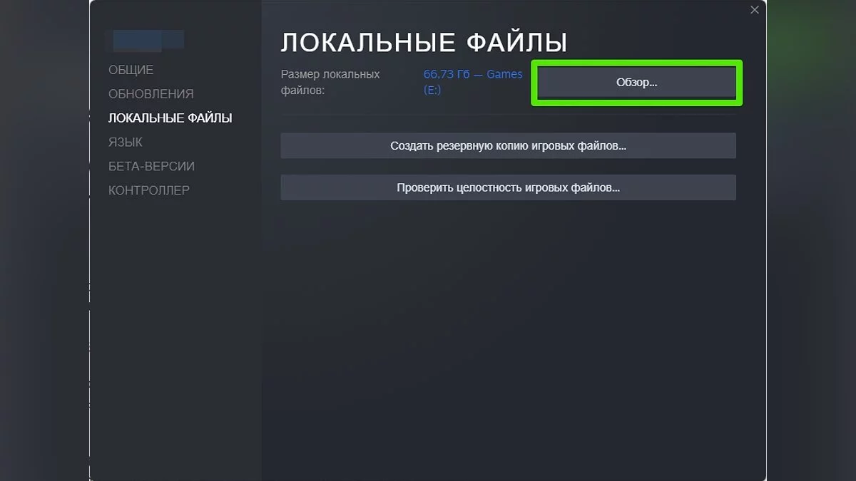 В первую очередь перейдите в корневую папку с игрой. Откройте клиент Steam, найдите установленную игру и кликните по ней ПКМ. Выберите «Свойства», затем «Локальные файлы». Кликните на кнопку «Обзор».