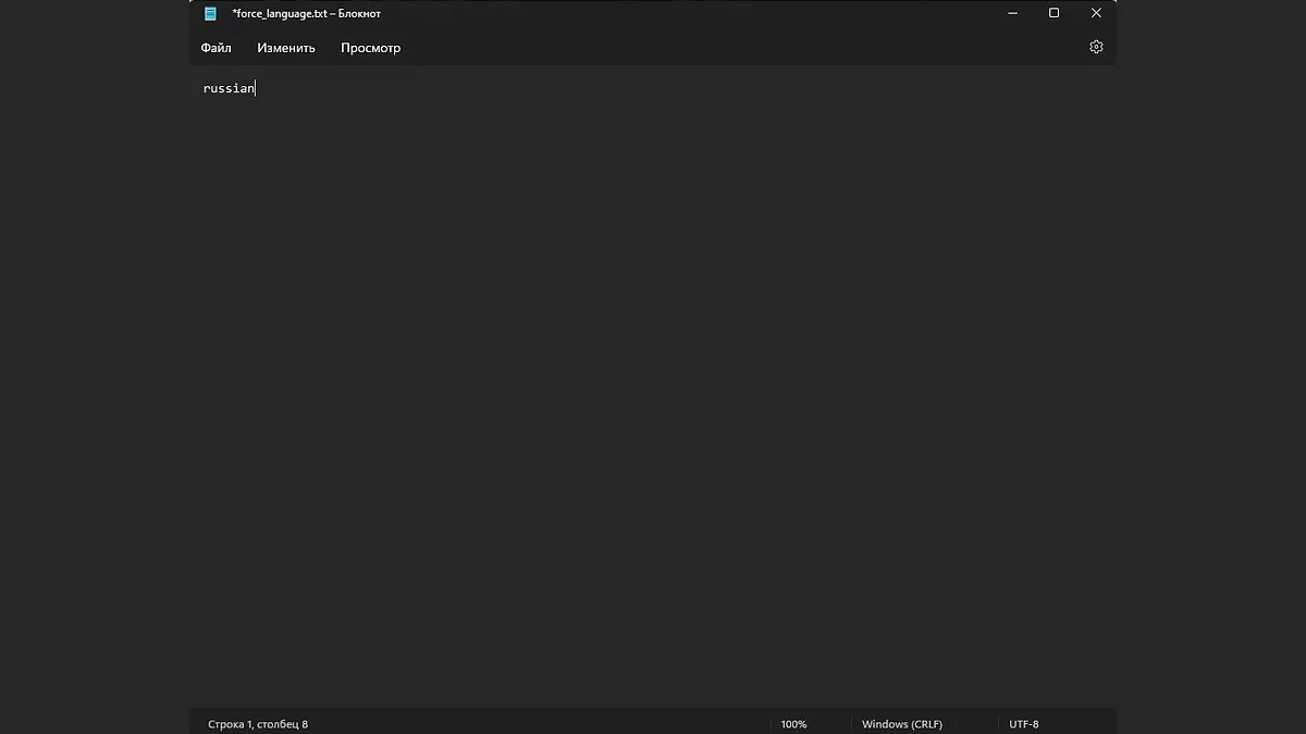 Перейдите в папку «steam_settings» и создайте текстовый документ с именем «force_language» без кавычек.