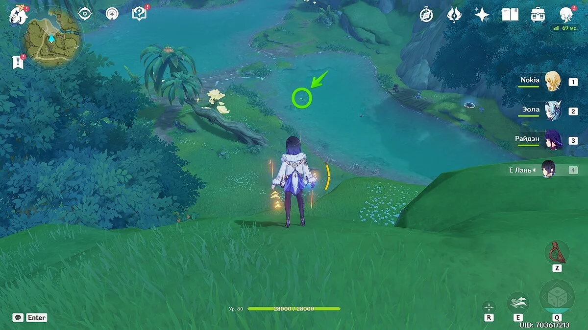 Вернитесь немного назад и на противоположной стороне реки найдите группу Крио слаймов. Следующий цветок находится неподалёку.