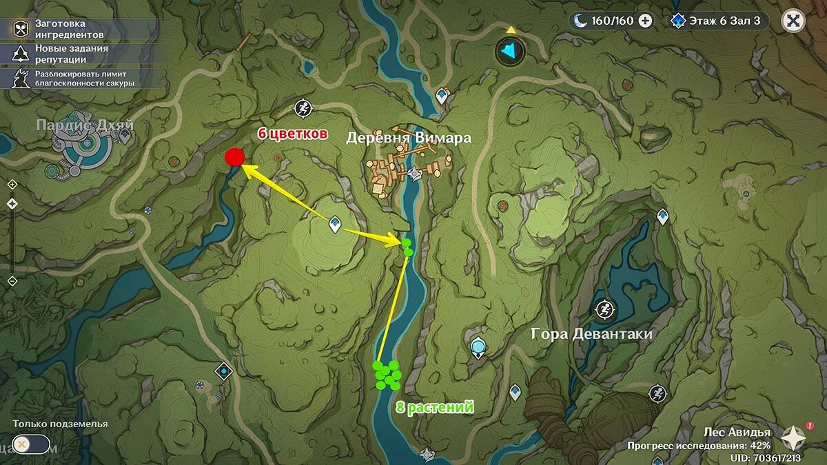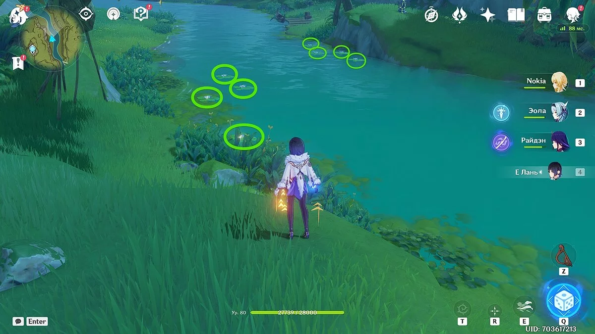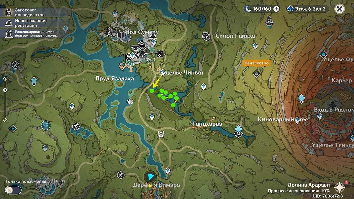 Для фарма диковинки в первую очередь мы предлагаем отправиться на северо-восток от города Сумеру. Здесь вы сможете найти 13 цветков, разбросанных по берегу реки.