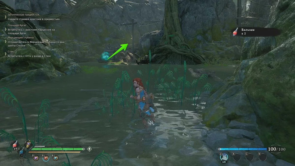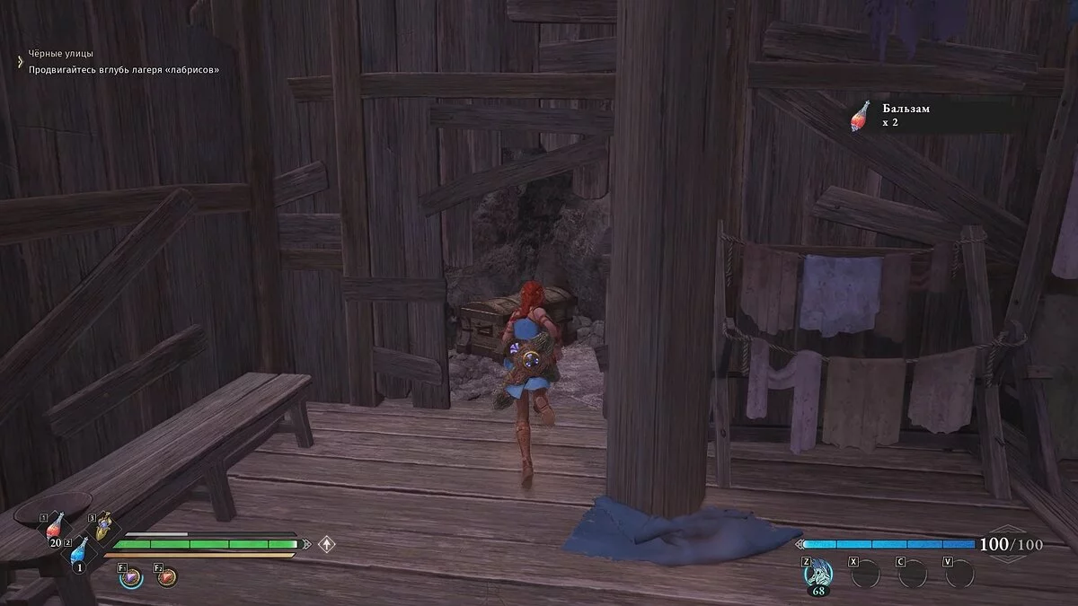 В конце туннеля вы найдёте украденные товары из хранилища Квинта. Они пригодятся, чтобы торговать с существом. У персонажа можно будет приобретать неограниченное количество бальзамов, эликсиров и бомб.