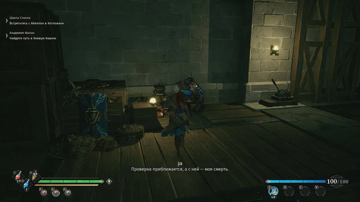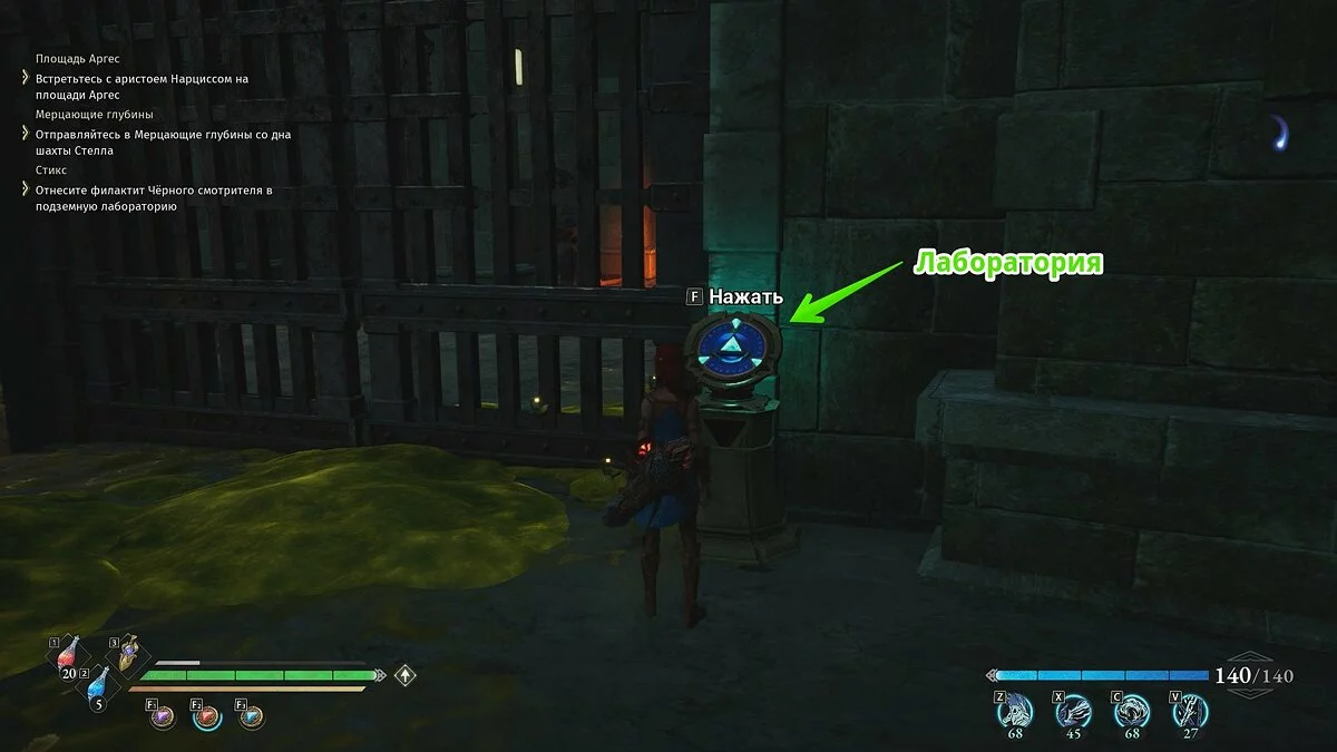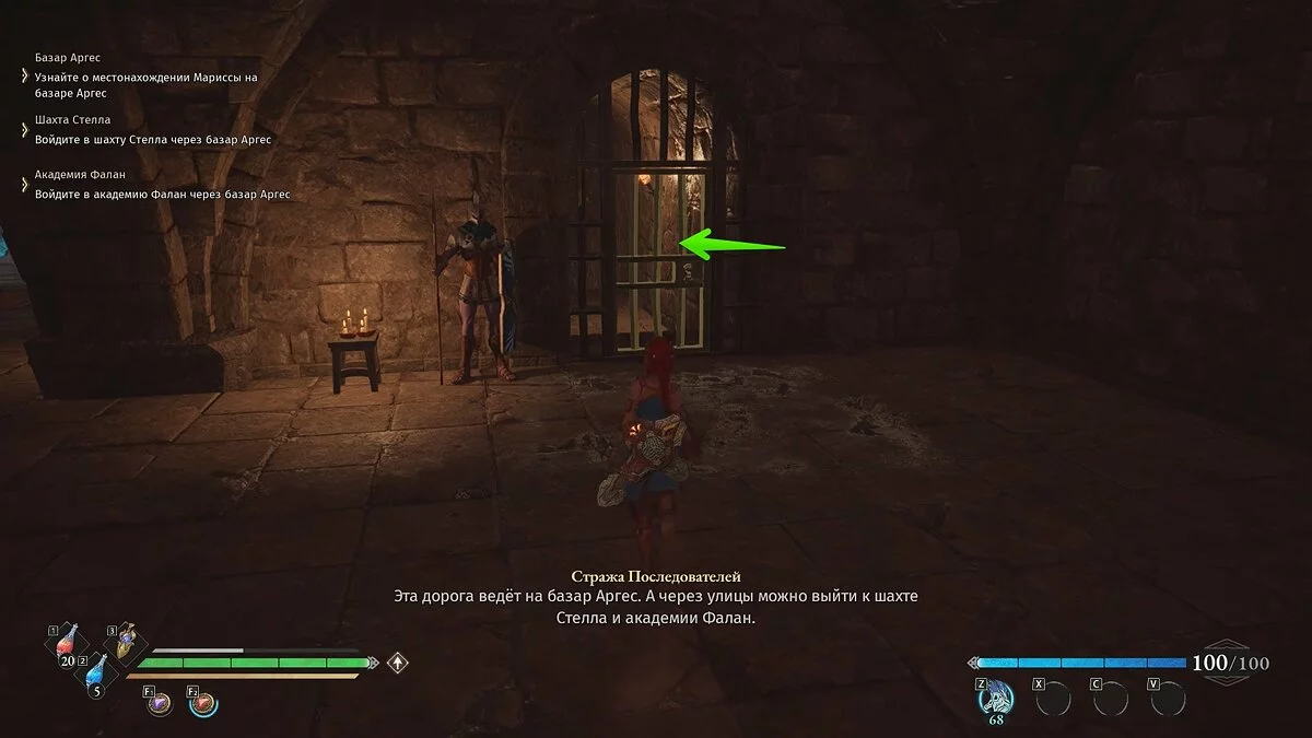 Снова пообщайтесь с Аганоном. Мужчина расскажет, что нужно заманить смотрителя в подвал и сразиться с ним. Перед этим вы можете взять побочный квест в темнице и осмотреть лабораторию на первом этаже.