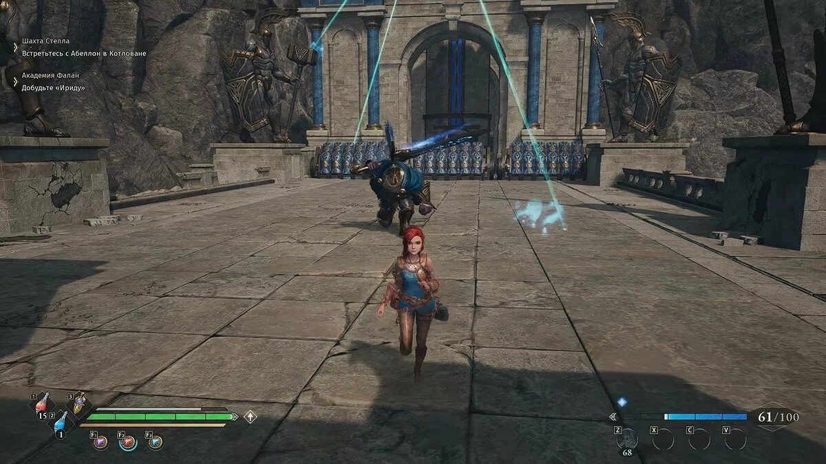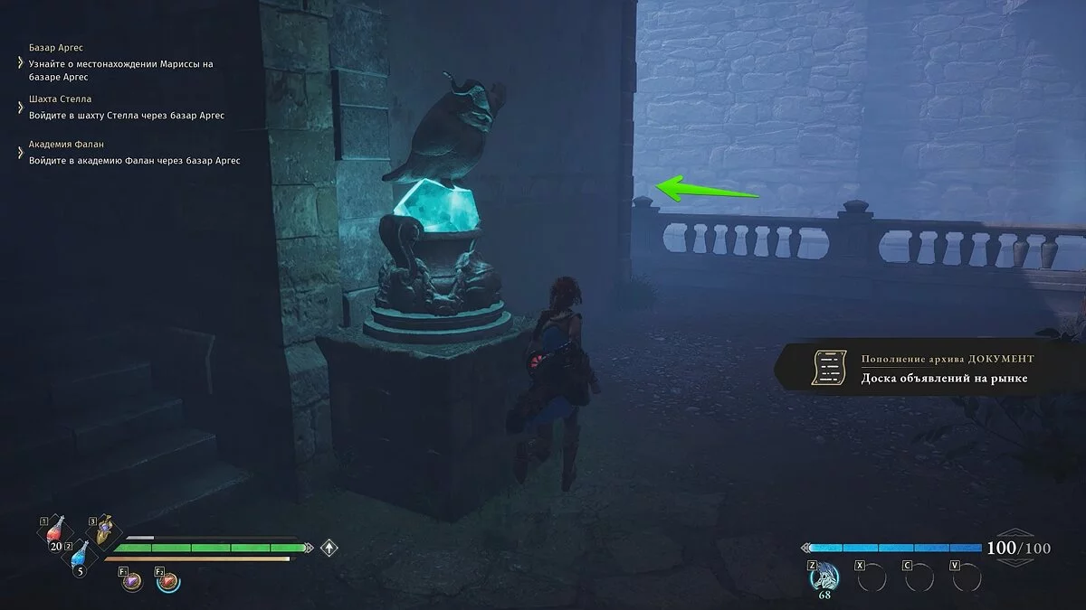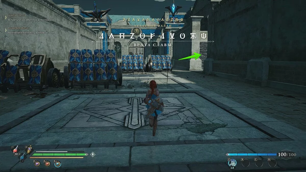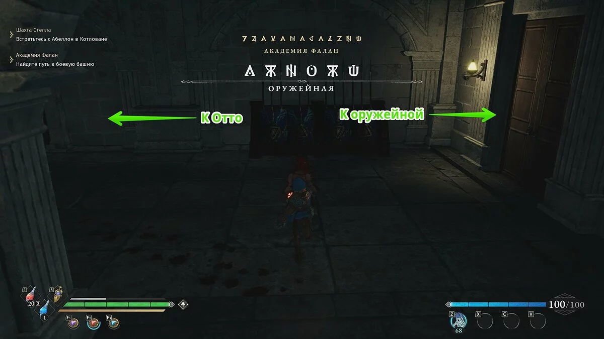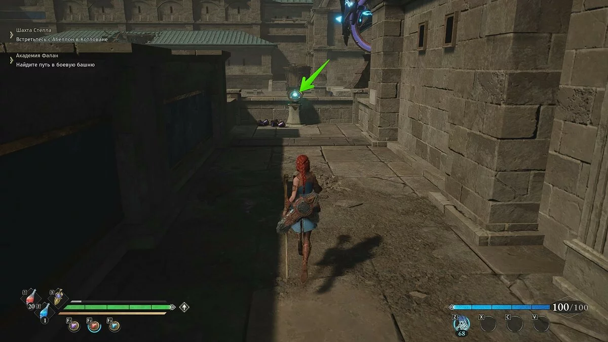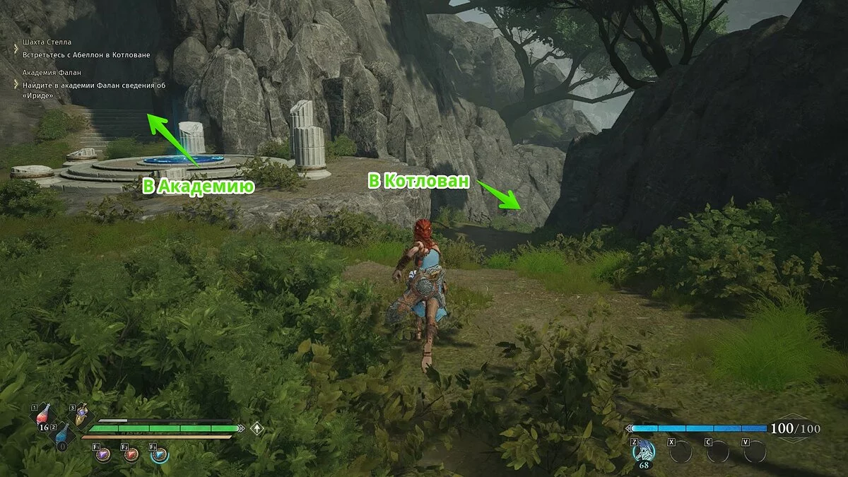 Следуйте вперёд, пока не доберётесь до Проводника. Здесь также есть развилка. Если вы хотите попасть сперва в академию Фалан, то бегите налево. Путь направо ведёт к Котлован. О прохождении этого региона мы рассказали ниже.