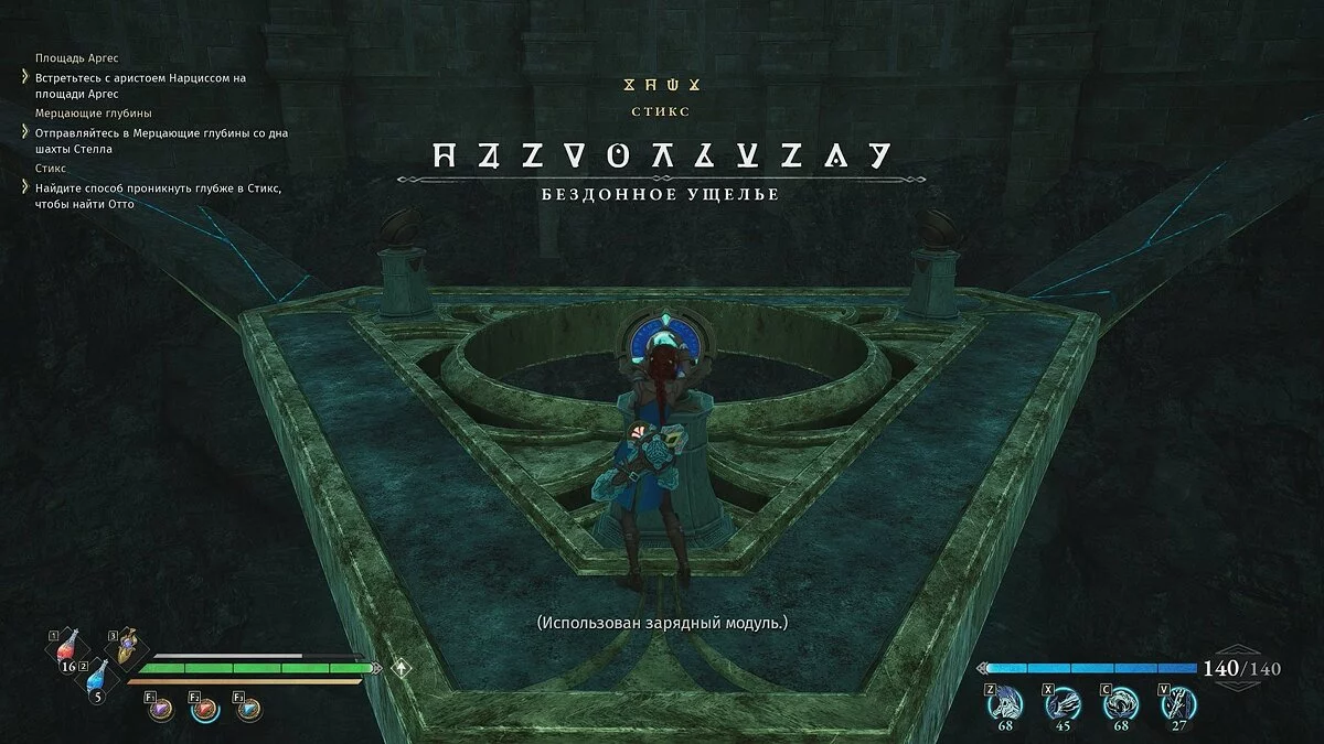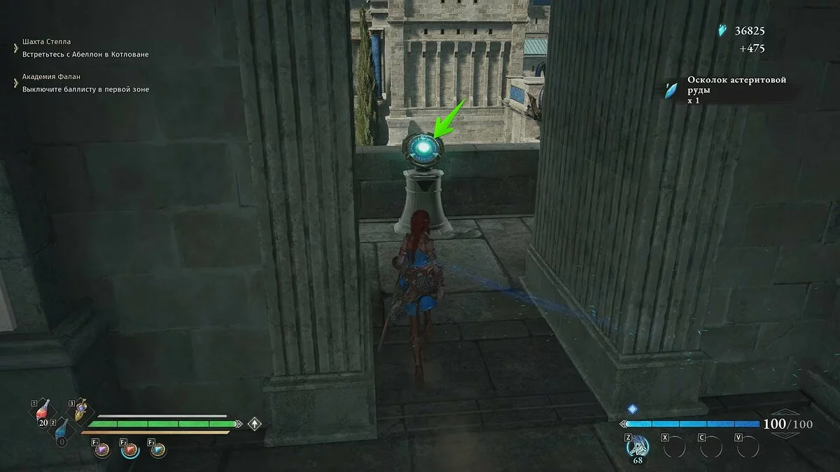 Вход на верхнем этаже заперт, поэтому сперва придётся посетить подземелье. В центральной его части есть механизм с тремя отверстиями. Если вы отключили все баллисты в академии Фалан, то сейчас самое время использовать полученные зарядные модули. Но этого будет недостаточно.