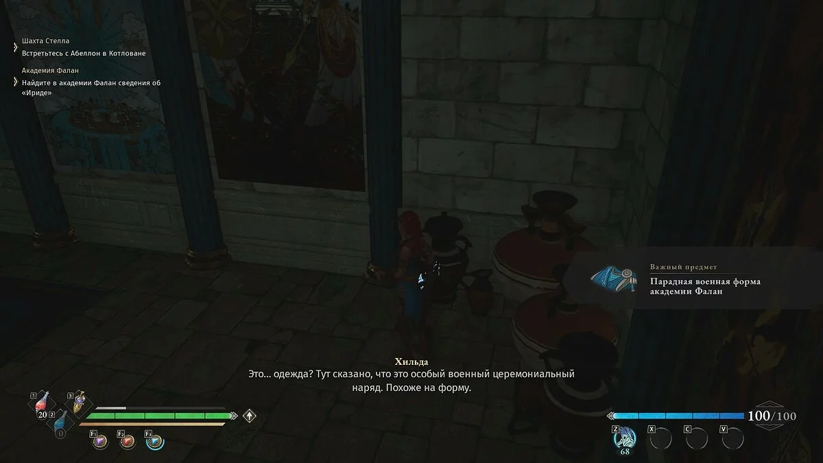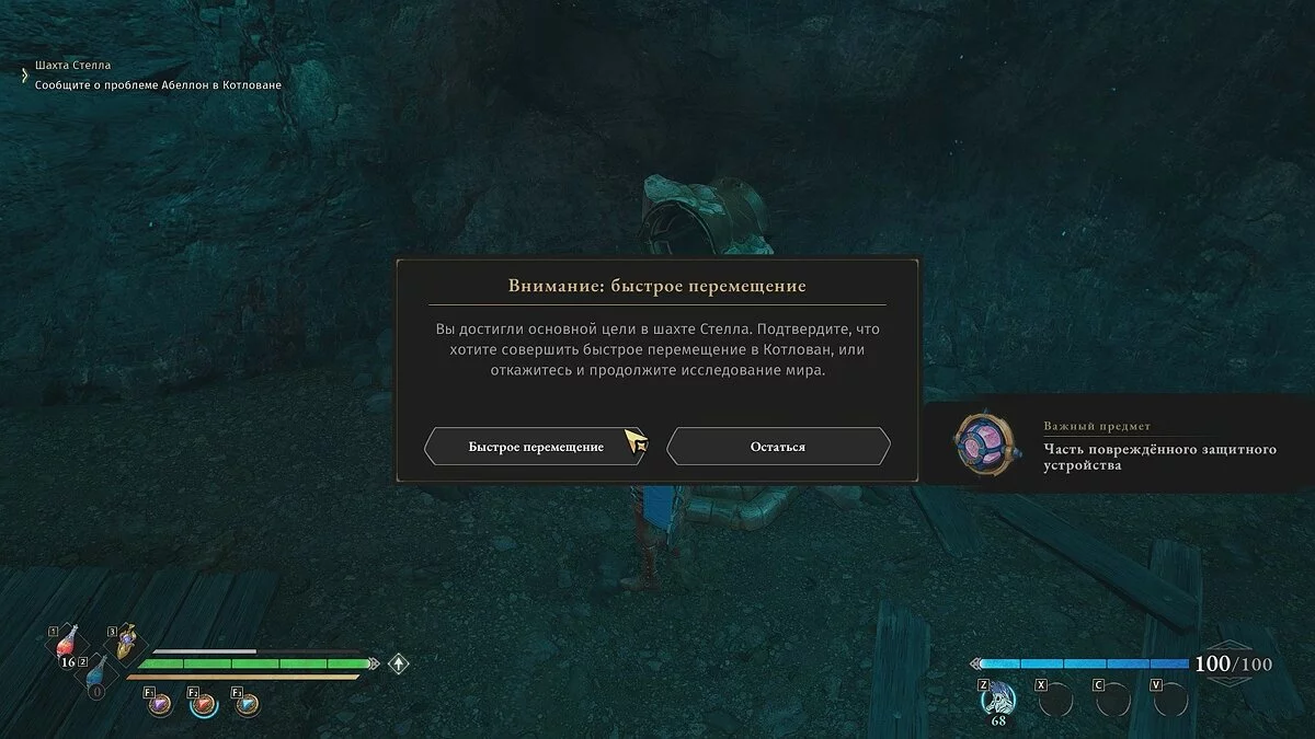 Когда одолеете босса, получите сюжетный предмет «Часть повреждённого защитного устройства». Теперь вы можете вернуться в Котлован и побеседовать с Абеллон. Она стоит неподалёку от главного входа.