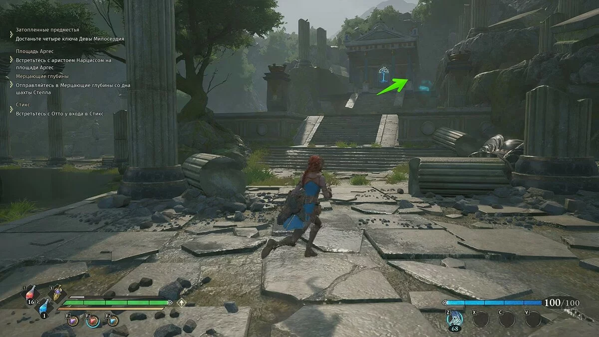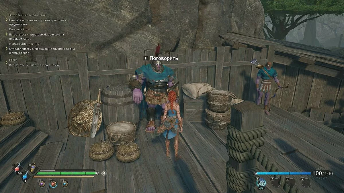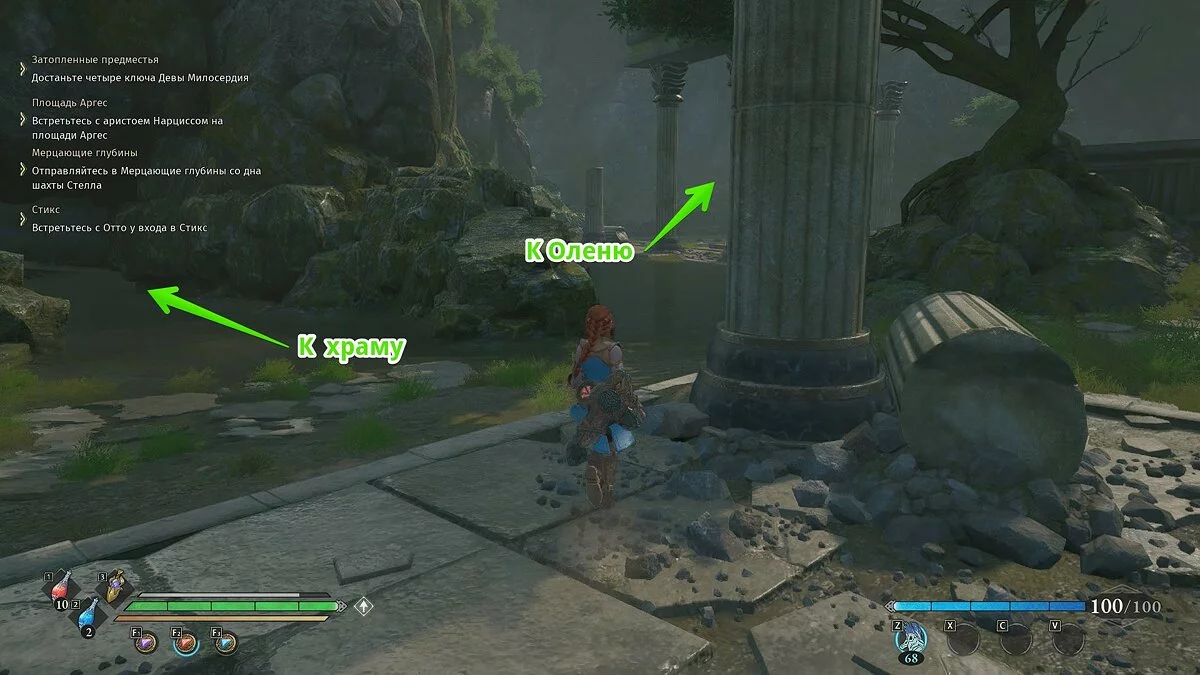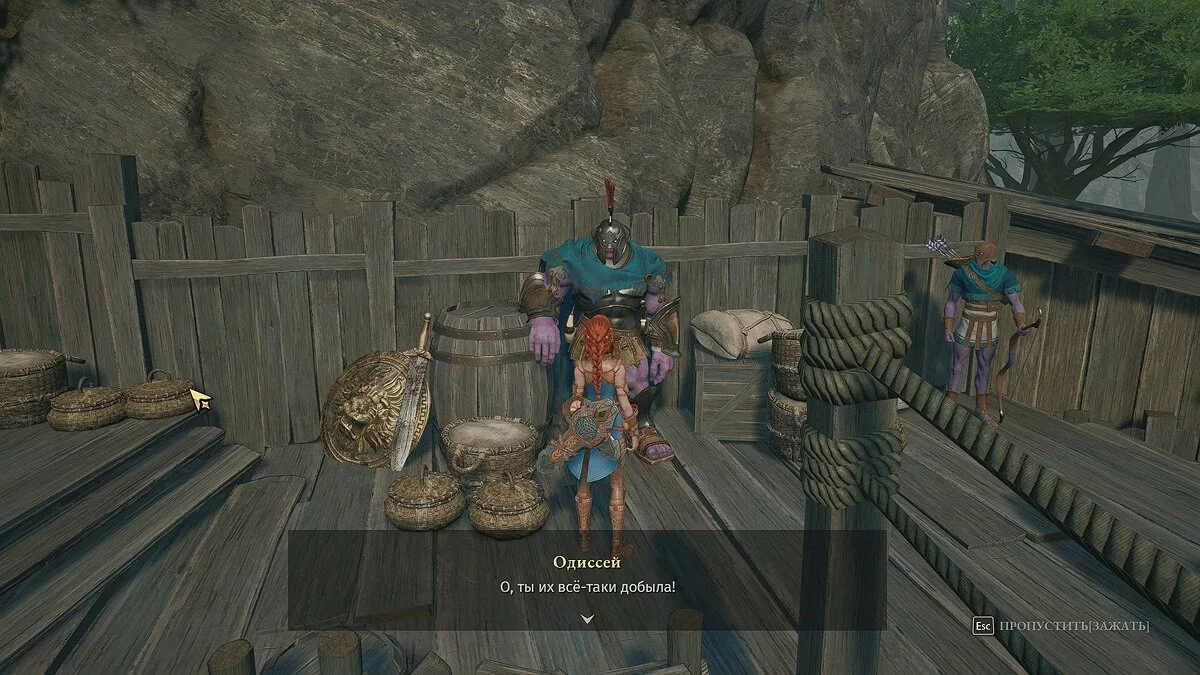 Одиссей даст вам несколько поручений. Выполнить их несложно, но для этого придётся исследовать всю локацию. Помимо этого, он отдаст вам первый ключ от храма. Ниже мы подготовили подробный список задач.